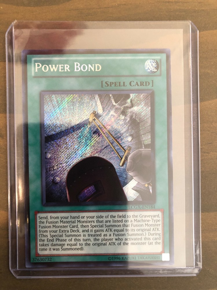 You will be buying a Mint/Near Mint Unlimited Edition Secret Rare, Power Bond from Legendary Collection 2 (LCGX-184) Yugioh Card. This card has never been played and was sleeved immediately after being opened and put into an Ultra Pro Top loader. Ships with tracking. Please feel free to take a look at my other listings. Thanks!