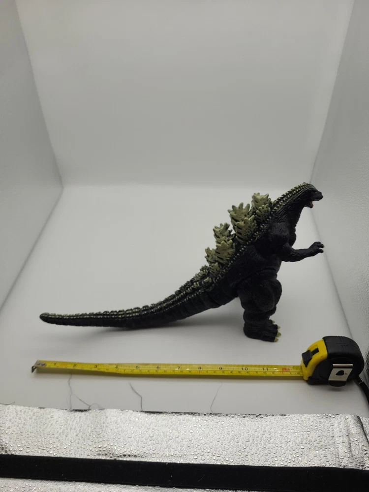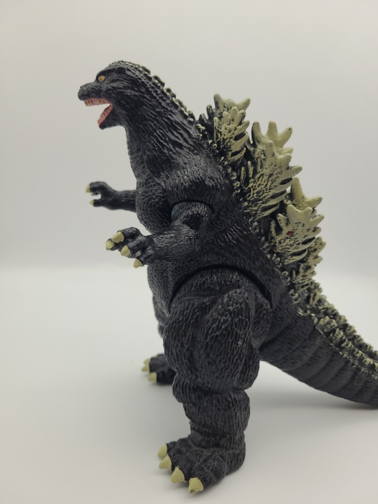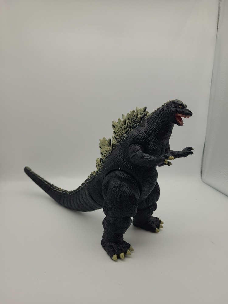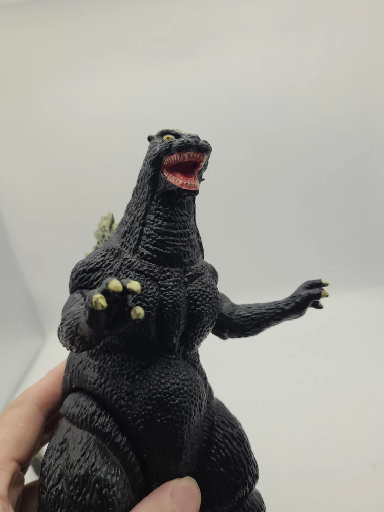 Pre-Bandai S.H.MonsterArts GODZILLA 90's. I think this is from that era, though I cannot find an exact match for the model. It's possible it's a later knock-off, but I can't find evidence for that either. Sold as-is. Five points of articulation, hands and head are not removable. No makers mark.