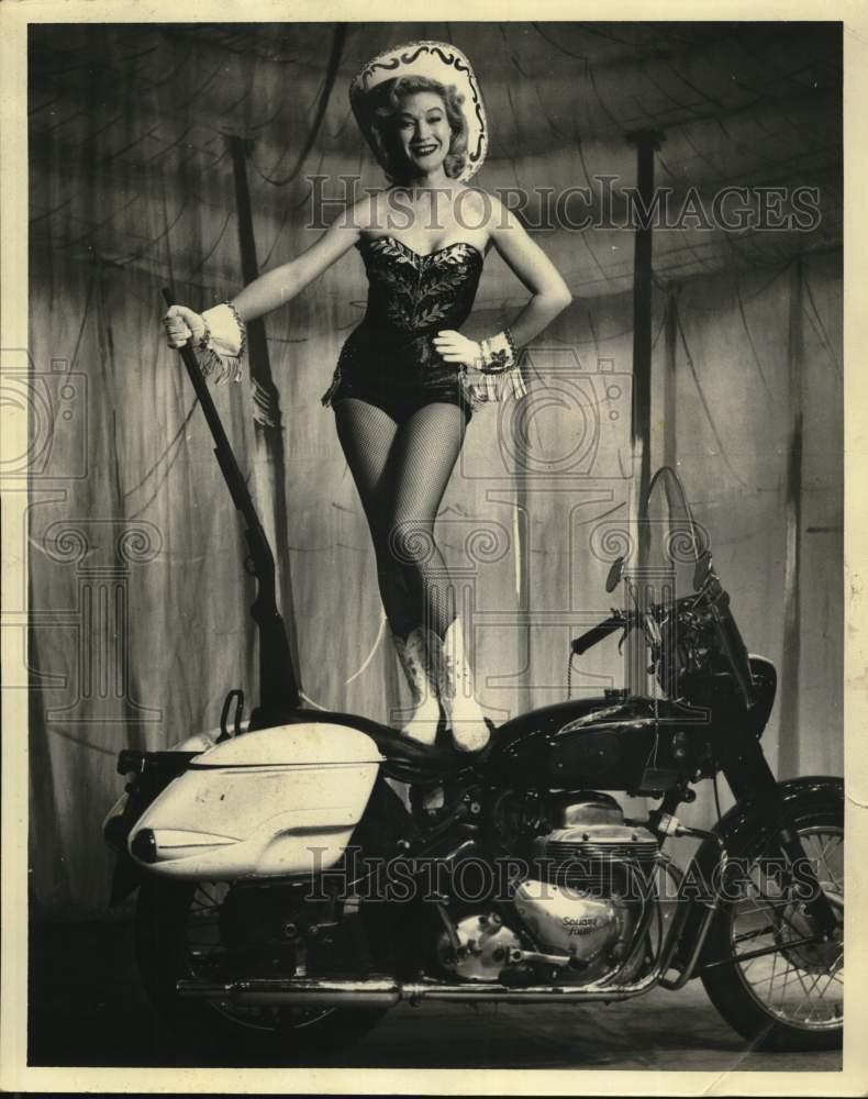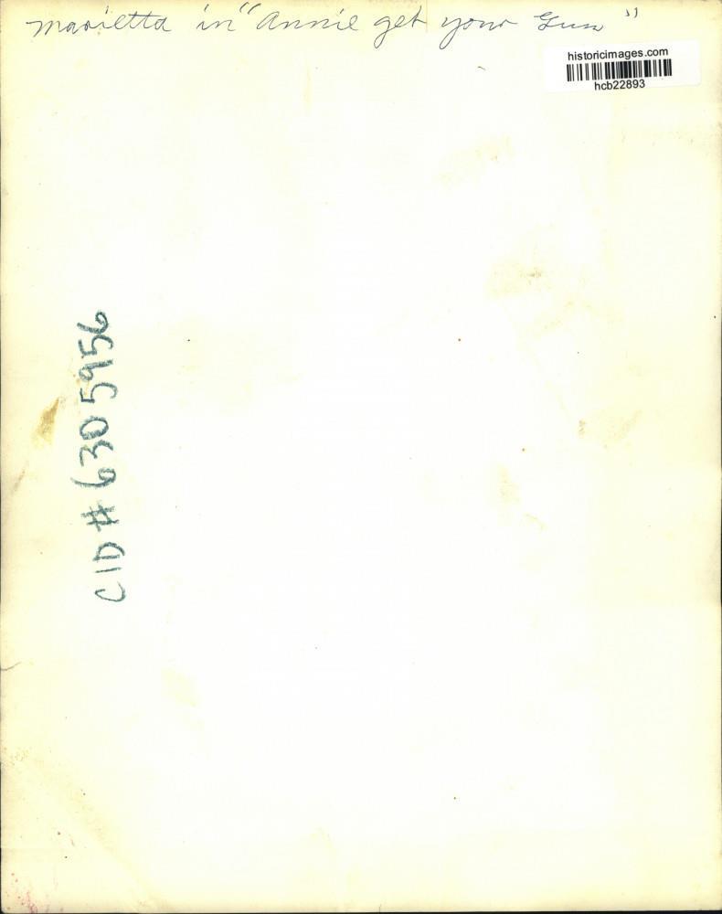 ebay template Note: Please study the images carefully to determine the condition of this vintage photograph, as it may not be in perfect condition. It may contain wrinkles, cracks, and possibly even tears due to its age and how it was handled before it got to us. A scanner may interpret colors and contrast differently than human eyes will, so it is possible that the actual photograph may be slightly darker or lighter in person. This vintage photograph is offered for sale as a collectible item and conveys no transfer of copyright. Press Photo Marietta Marich in "Annie Get Your Guns." - hcb22893 This is an original press photo. Marietta Marich in "Annie Get Your Guns."Photo measures 8 x 10inches. Photo is dated --none. PHOTO FRONT PHOTO BACK Historic Images Part Number: hcb22893 Sell Smarter with Kyozou. Inventory and Ecommerce Management