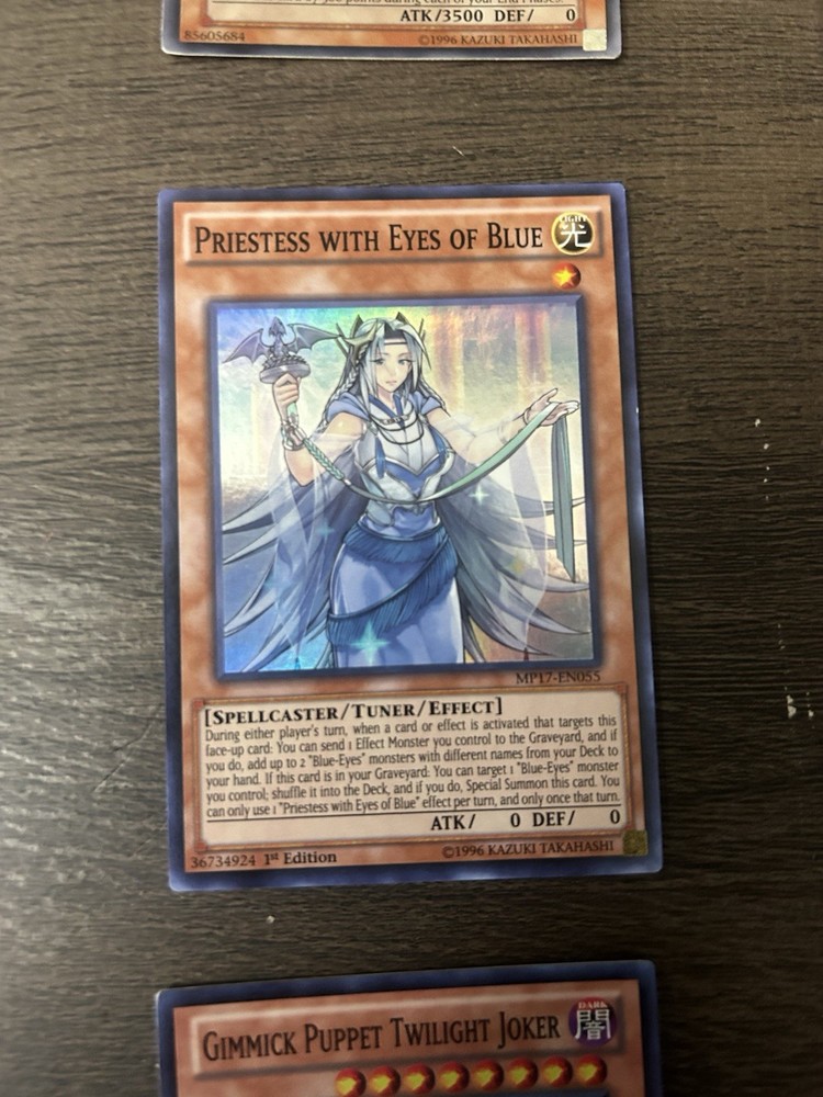 This card is an absolute gem for Yu-Gi-Oh! fans! Priestess with Eyes of Blue is a stunning super rare with a sleek design and powerful effects. As a 1st edition from the 2017 Mega-Tins, it’s a fantastic addition to any Blue-Eyes deck or collector’s stash. The artwork is gorgeous, and its tuner ability makes it super versatile in duels. Highly recommend for both competitive play and display—definitely worth grabbing while you can!