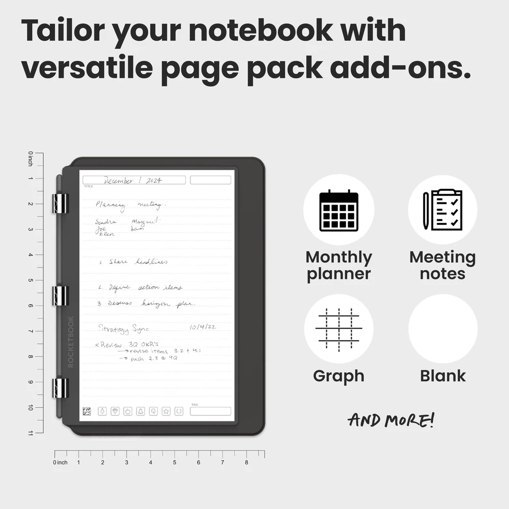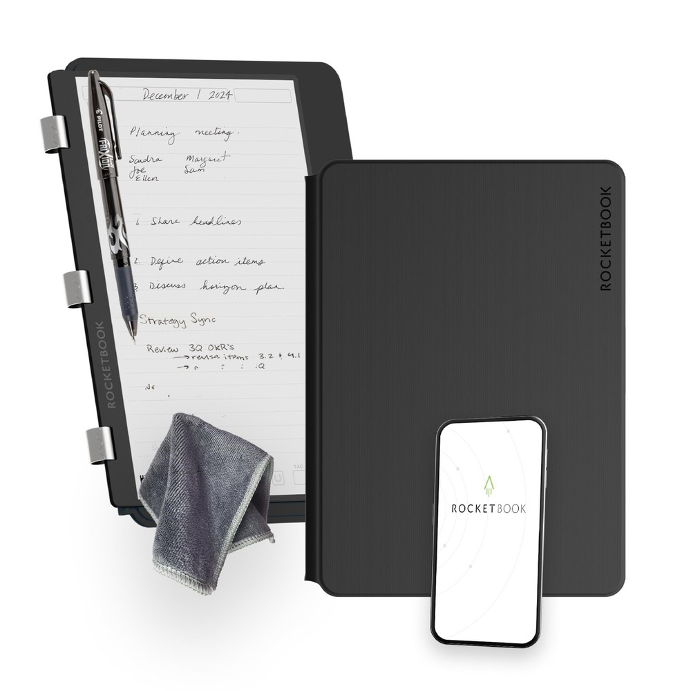 Interchangeable Page Packs: Designed for flexibility, the Pro 2.0 features a 40-page lined and dot grid page pack. Additional page packs, such as planners and goal trackers, are sold separately, allowing you to tailor your notebook to your needs. Write, Digitize, Erase, and Reuse: Write with the included FriXion erasable gel pen, scan and save your notes digitally in your cloud destination of choice with the Rocketbook app, and wipe clean with the included towel and water to reuse again and again. Digital Organization: Equipped with an embedded NFC chip, this notebook auto-opens the Rocketbook app for seamless scanning and uploading of your notes to Google Drive, Dropbox, OneNote, and more, ensuring accessibility anywhere. High-Quality Professional & Durable Materials: Made with a premium, scratch-resistant vegan leather cover, this notebook offers a sophisticated look and feel. Perfect for professionals and students, it’s built to last and elevate your office essentials. Endless Productivity: Reduce paper clutter and keep your workspace tidy with a reusable notebook designed to simplify your workflow. Launch ideas into action as you jot down notes, track goals, and save creative concepts—again and again!