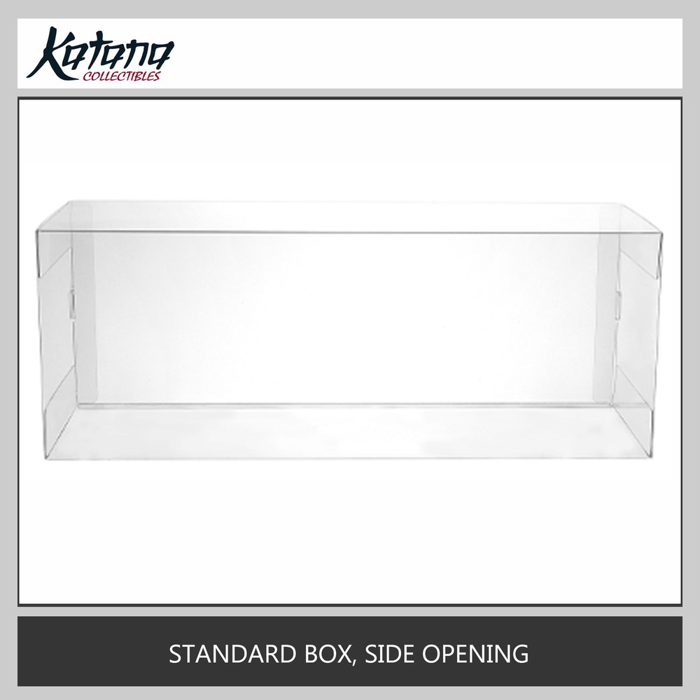 Premium Box Protector Product Highlights Perfect Fit : Designed to fit Standard Box - Side Opening Fit Box Size (L x H x D) :16.9291" x 8.6614" x 5.1181" (430 x 220 x 130 mm) Superior Protection : Guards against dust, grime, fingerprints, and UV damage Premium Material : Made from 0.5mm thick, high-grade PET with UV protection Crystal Clear : Removable protective film on both sides for pristine clarity Made in USA : Crafted to order for unmatched quality and customization options Key Features Standard Design : Simple design to accommodate most collectible Side Opening : Convenient access with opening flaps on the sides of the box Customizable Options : Style: GFL Design (Glue-Free) or Glued Design Hanger: Mini Hanger (not recommended for Glued Design), or No Hanger Locking Tab: Standard, Easy Pull, or No Tab Easy Assembly : Ships flat with simple folding instructions available on our website Secure Shipping : Packaged in sturdy envelopes with thick cardboard inserts to prevent damage Why Choose Our Box Protectors? Quality : Made from the best materials on the market for optimal protection Flexibility : Custom designs available for unique collectibles Expertise : Specialized in collectible protection to preserve your investments Convenience : Each protector individually labeled for easy identification Important Note on Dimensions and Fit Please read carefully before purchasing: The dimensions for this protector were provided by customers and have NOT been confirmed to fit by previous customer. These measurements are provided as a reference only. The actual fit may vary significantly. For guaranteed fit, we recommend ordering a custom-sized protector by providing your own measurements. There is no extra charge for custom sizes. We strongly recommend measuring your item carefully before placing your order. Please select your options carefully . As these items are custom-made to order, we cannot accept returns or exchanges if you select incorrect options or change your mind. If you need a specific fit tolerance, please consider ordering a custom-sized protector by providing your own measurements. How to Order Select your preferred options from the dropdown menus above. Add to cart and proceed to checkout. For custom sizes, please contact us directly with your specific measurements. Disclaimer: Picture is for reference only. You will receive 1 clear protector. Toy/Movie/Game/Object in the picture is not included. Preserve your collection's value with our premium box protectors – the ultimate protection for your prized collectibles!