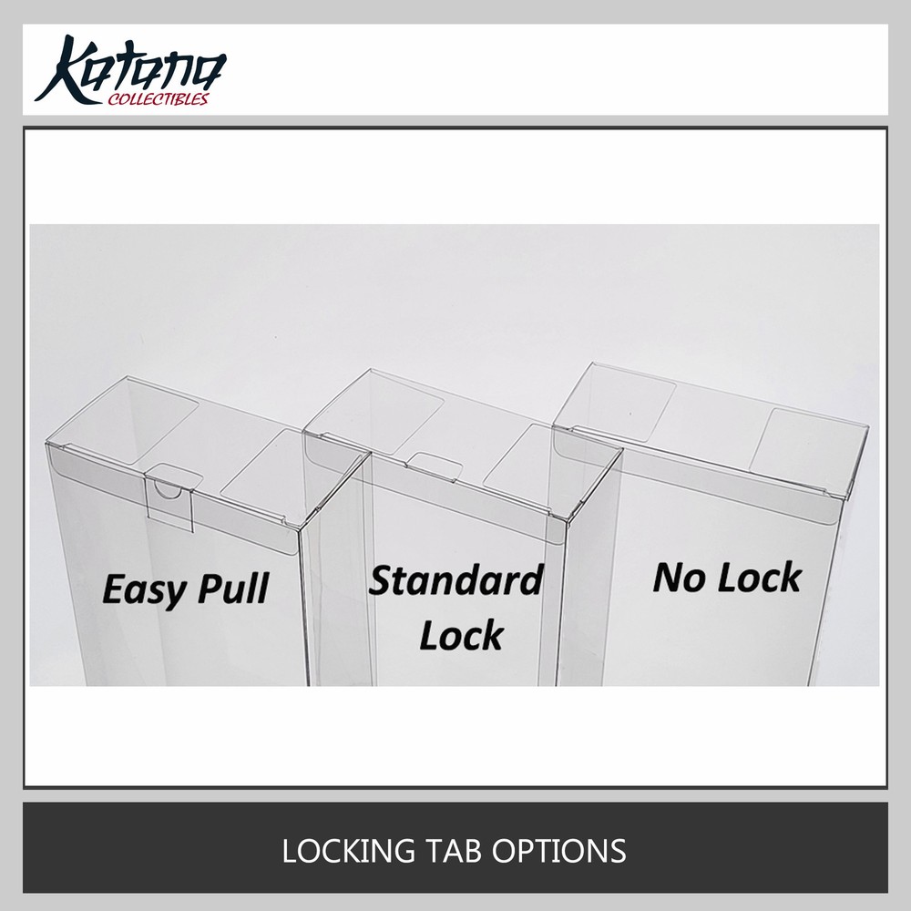Premium Box Protector Product Highlights Perfect Fit : Designed to fit Standard Box - Side Opening Fit Box Size (L x H x D) :11.811" x 7.874" x 4.7244" (300 x 200 x 120 mm) Superior Protection : Guards against dust, grime, fingerprints, and UV damage Premium Material : Made from 0.5mm thick, high-grade PET with UV protection Crystal Clear : Removable protective film on both sides for pristine clarity Made in USA : Crafted to order for unmatched quality and customization options Key Features Standard Design : Simple design to accommodate most collectible Side Opening : Convenient access with opening flaps on the sides of the box Customizable Options : Style: GFL Design (Glue-Free) or Glued Design Hanger: Mini Hanger (not recommended for Glued Design), or No Hanger Locking Tab: Standard, Easy Pull, or No Tab Easy Assembly : Ships flat with simple folding instructions available on our website Secure Shipping : Packaged in sturdy envelopes with thick cardboard inserts to prevent damage Why Choose Our Box Protectors? Quality : Made from the best materials on the market for optimal protection Flexibility : Custom designs available for unique collectibles Expertise : Specialized in collectible protection to preserve your investments Convenience : Each protector individually labeled for easy identification Important Note on Dimensions and Fit Please read carefully before purchasing: The dimensions for this protector were provided by customers and have NOT been confirmed to fit by previous customer. These measurements are provided as a reference only. The actual fit may vary significantly. For guaranteed fit, we recommend ordering a custom-sized protector by providing your own measurements. There is no extra charge for custom sizes. We strongly recommend measuring your item carefully before placing your order. Please select your options carefully . As these items are custom-made to order, we cannot accept returns or exchanges if you select incorrect options or change your mind. If you need a specific fit tolerance, please consider ordering a custom-sized protector by providing your own measurements. How to Order Select your preferred options from the dropdown menus above. Add to cart and proceed to checkout. For custom sizes, please contact us directly with your specific measurements. Disclaimer: Picture is for reference only. You will receive 1 clear protector. Toy/Movie/Game/Object in the picture is not included. Preserve your collection's value with our premium box protectors – the ultimate protection for your prized collectibles!