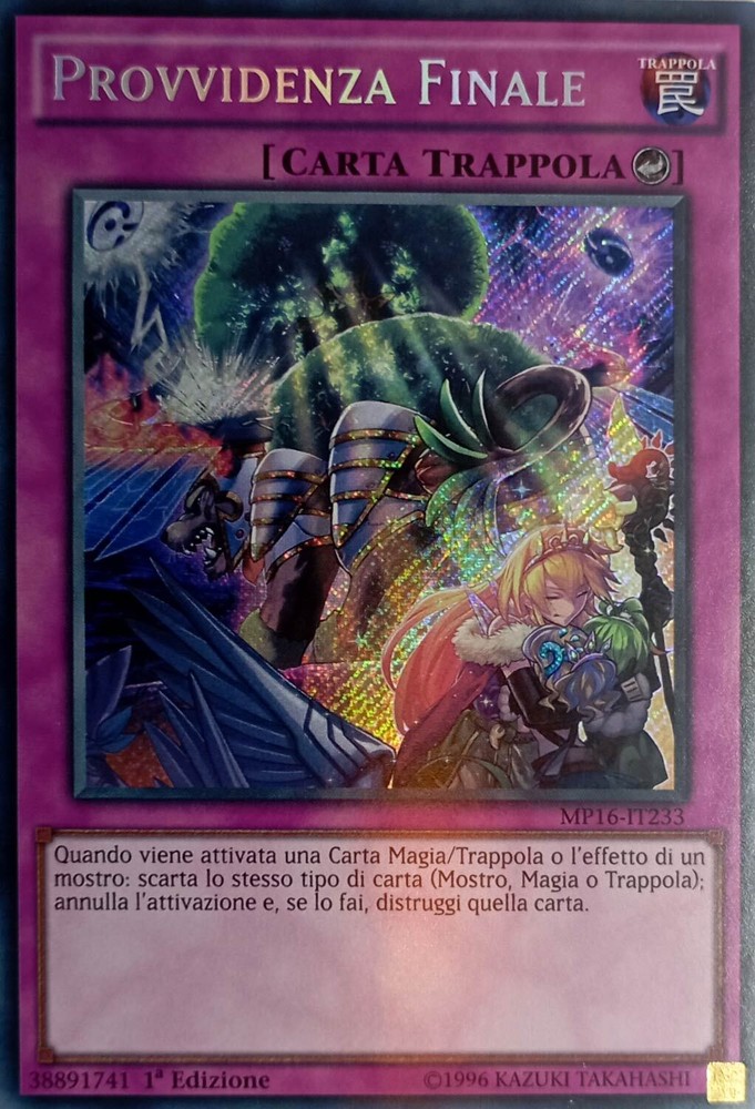 Provvidenza Finale - Rara Segreta - 2016 Mega-Tins MP16-IT233 - Italiano - Nuovo Provvidenza Finale - Rara Segreta - 2016 Mega-Tins MP16-IT233 - Italiano - Nuovo Quando viene attivata una Carta Magia/Trappola o l’effetto di un mostro: scarta lo stesso tipo di carta (Mostro, Magia o Trappola); annulla l’attivazione e, se lo fai, distruggila. Shipping Shipping cost: Italy Posta 1 -> 2,95 Corriere Espresso -> 5,99 Outside Italy Priority - 8,00 Delivery time: La Spedizione Viene Effettuata entro i 5 giorni successivi al pagamento dell'ordine. Payment Per qualsiasi info contattateci Service Per qualsiasi info contattateci