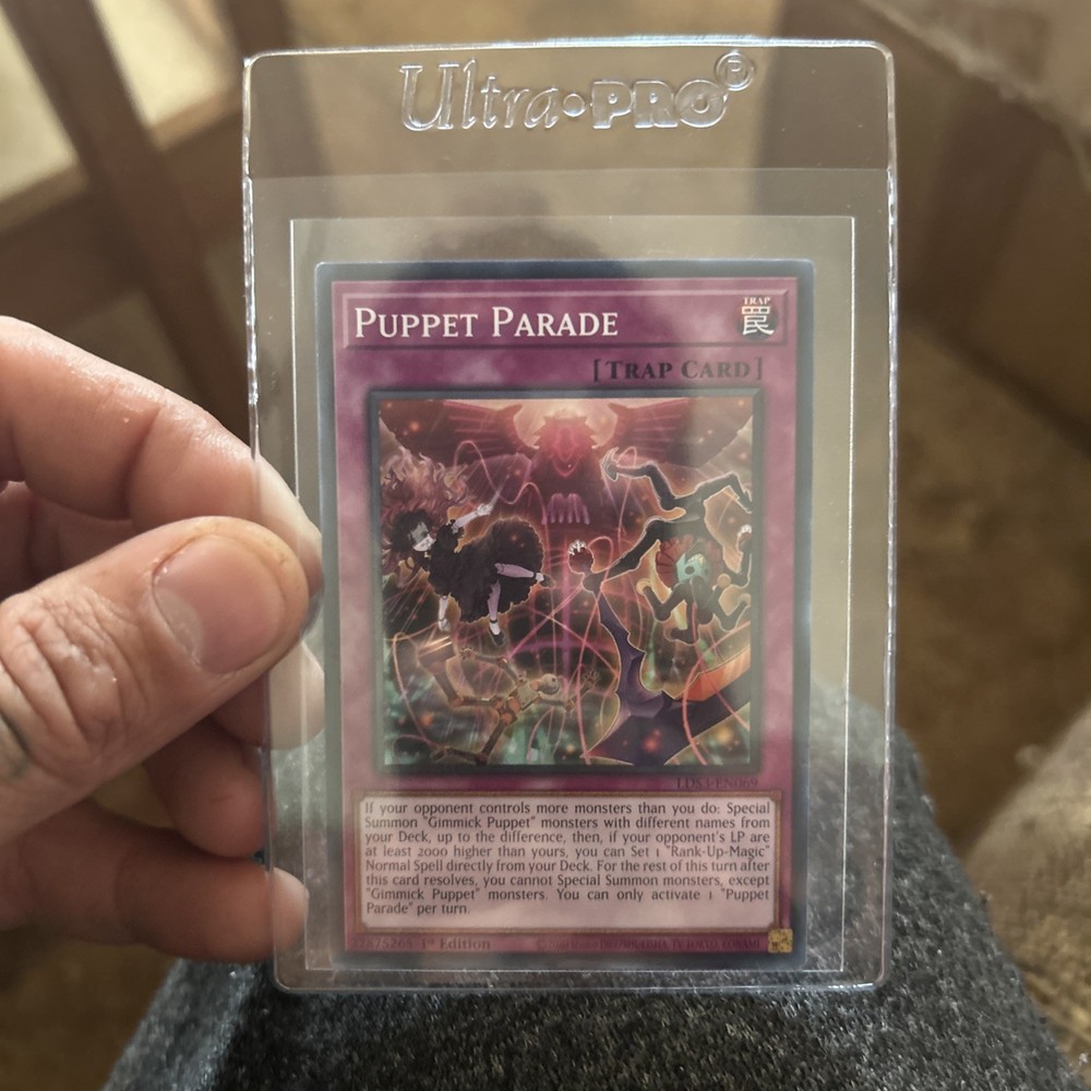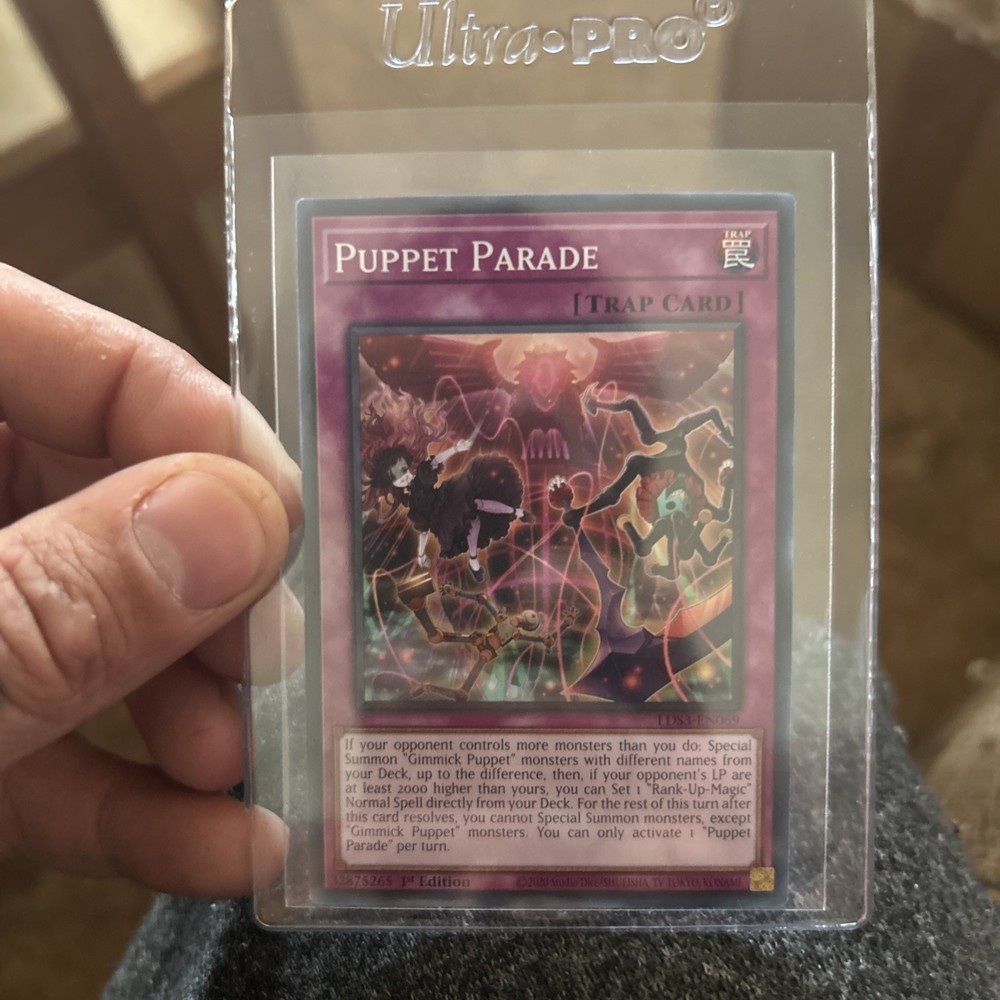 The Puppet Parade LDS3-EN069 card is a Common / Short Print Trap card from the Yu-Gi-Oh! TCG set Legendary Duelists: Season 3. Manufactured by Konami, this English-language card features a 1st Edition print and belongs to the Trap-Normal card type. With its unique design and rarity, this collectible card is a valuable addition to any Yu-Gi-Oh! card collection.