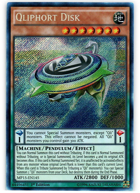 Qliphort Disk MP15-EN145 Secret Rare 1st Edition NM Yugioh 2015 Mega-Tin