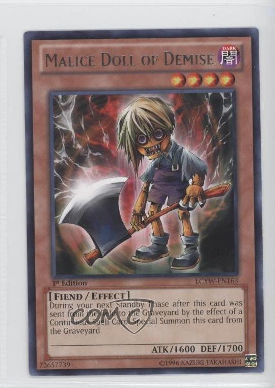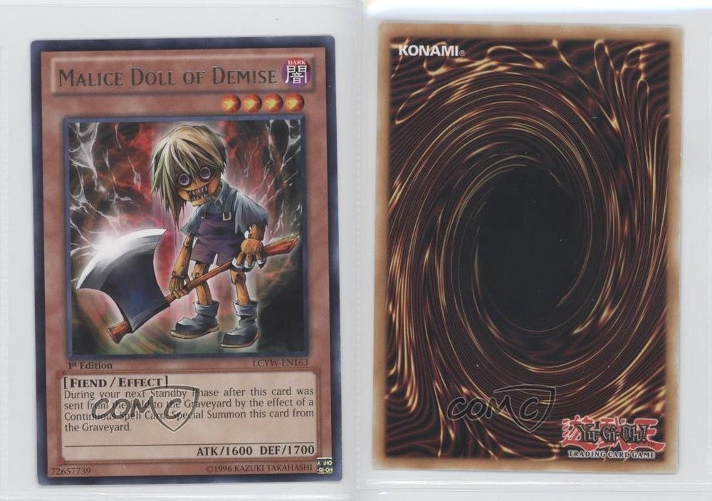 2012 Yu-Gi-Oh! Legendary Collection 3: Yugi's World - Mega-Pack [Base] - 1st Edition #LCYW-EN163 R - Malice Doll of Demise COMC Item: 11622874 - YuGiOh Card - Featuring Malice Doll of Demise Search for more: 2012 Yu-Gi-Oh! Legendary Collection 3: Yugi's World Search for more: 2012 Yu-Gi-Oh! Legendary Collection 3: Yugi's World - Mega-Pack [Base] - 1st Edition View all of our Listings Auctions Buy It Now About Us Located in the beautiful Pacific Northwest, COMC (Check Out My Cards) is the world's largest consignment service for trading card singles. More than 10,000 people have used our consignment service to list over 50 million trading cards. Find out how we can help you consign your items on eBay by contacting us through eBay messaging. COMC -- "The Safe & Easy Way to Buy & Sell" Raw Condition for Modern Cards Unless otherwise noted, raw modern cards are listed in Near Mint-Mint condition or better. A NM-MT card appears to be Mint at first glance, but upon closer inspection, may exhibit some of the following: minor print defects (e.g. roller marks, print line, dimple), minor scratches, slight edge wear, and slight corner wear. Centering is clearly visible in the images provided and does not factor into our condition assessment. Raw Condition for Vintage Cards Unless otherwise noted, raw vintage cards are listed in Excellent condition or better. An EX card may exhibit some of the following: minor rounding of corners, surface wear, print defects, light scratches, and slight edge wear/chipping. Centering is clearly visible in the images provided and does not factor into our condition assessment. Domestic Shipping Combined shipping for multiple items is available. To receive combined shipping, please ensure all desired items are in your eBay shopping cart before proceeding to checkout. eBay limits orders to 40 items per order. We automatically combine multiple orders placed on the same day. If you place multiple orders on the same day, please contact us to request a refund of applicable shipping costs. Signature confirmation may be required on invoices over $400. All cards are protected and shipped securely. International Shipping COMC offers eBay's International Shipping (EIS) for international orders under $2,500* (see country exceptions below). All duties and import fees are paid at checkout; in the rare event that there are additional import fees upon delivery, these are borne by the buyer. EIS packages route through a shipping hub in Erlanger, KY before shipping to their final destination. Please note that EIS does not allow for combined shipments. The shipping rates are determined by eBay and cannot be adjusted. *Maximum sale price exceptions: Colombia, Kuwait ($2,000); Taiwan ($1,539); Chile, Costa Rica, Guatemala, Honduras, Trinidad and Tobago ($1,000); Antigua and Barbuda, Aruba, Belize, Dominica, Grenada, Philippines, Saint Kitts and Nevis, Saint Lucia, Montserrat, Turks and Caicos Islands ($500); Dominican Republic, El Salvador ($200). Please request a shipping quote through eBay messaging for orders that exceed the maximum sale price supported by eBay's International Shipping. You will be responsible for all duties and import fees for international orders shipped outside the EIS. All cards are protected and shipped securely. Payment COMC does not accept offers on our cards through our eBay storefront. COMC utilizes eBay’s managed payments system. If you are experiencing difficulties making a payment, please contact eBay for assistance. Return Policy Returns are only accepted on the rare occasion the item is not as described. If you are making a return, please initiate the return process through eBay so a mailing label can be provided for you. Prior to listing, our expert team carefully assessed this item to represent it accurately. Please review the description and high-definition images prior to purchasing to ensure this item meets your satisfaction. We welcome you to contact us if you have further questions about this item. Trust and Integrity COMC carefully assesses each item consigned to us to prevent fraudulent items from entering the marketplace. If you believe an item offered on COMC may be fraudulent, please contact us with details so we can investigate the issue. Items we determine are outside our supported items policy may be removed. Last Modified: 6/9/2025 6:08:32 PM PDT