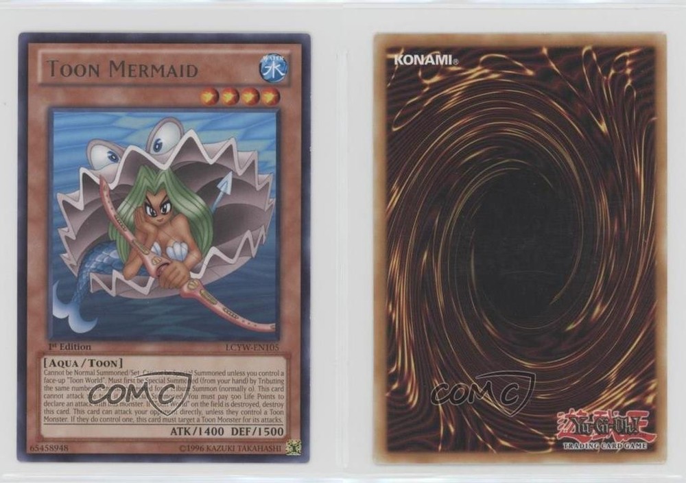 2012 Yu-Gi-Oh! Legendary Collection 3: Yugi's World - Mega-Pack [Base] - 1st Edition #LCYW-EN105 R - Toon Mermaid COMC Item: 91858168 - YuGiOh Card - Featuring Toon Mermaid Search for more: 2012 Yu-Gi-Oh! Legendary Collection 3: Yugi's World Search for more: 2012 Yu-Gi-Oh! Legendary Collection 3: Yugi's World - Mega-Pack [Base] - 1st Edition View all of our Listings Auctions Buy It Now About Us Located in the beautiful Pacific Northwest, COMC (Check Out My Cards) is the world's largest consignment service for trading card singles. More than 10,000 people have used our consignment service to list over 50 million trading cards. Find out how we can help you consign your items on eBay by contacting us through eBay messaging. COMC -- "The Safe & Easy Way to Buy & Sell" Raw Condition for Modern Cards Unless otherwise noted, raw modern cards are listed in Near Mint-Mint condition or better. A NM-MT card appears to be Mint at first glance, but upon closer inspection, may exhibit some of the following: minor print defects (e.g. roller marks, print line, dimple), minor scratches, slight edge wear, and slight corner wear. Centering is clearly visible in the images provided and does not factor into our condition assessment. Raw Condition for Vintage Cards Unless otherwise noted, raw vintage cards are listed in Excellent condition or better. An EX card may exhibit some of the following: minor rounding of corners, surface wear, print defects, light scratches, and slight edge wear/chipping. Centering is clearly visible in the images provided and does not factor into our condition assessment. Domestic Shipping Combined shipping for multiple items is available. To receive combined shipping, please ensure all desired items are in your eBay shopping cart before proceeding to checkout. eBay limits orders to 40 items per order. We automatically combine multiple orders placed on the same day. If you place multiple orders on the same day, please contact us to request a refund of applicable shipping costs. Signature confirmation may be required on invoices over $400. All cards are protected and shipped securely. International Shipping COMC offers eBay's International Shipping (EIS) for international orders under $2,500* (see country exceptions below). All duties and import fees are paid at checkout; in the rare event that there are additional import fees upon delivery, these are borne by the buyer. EIS packages route through a shipping hub in Erlanger, KY before shipping to their final destination. Please note that EIS does not allow for combined shipments. The shipping rates are determined by eBay and cannot be adjusted. *Maximum sale price exceptions: Colombia, Kuwait ($2,000); Taiwan ($1,539); Chile, Costa Rica, Guatemala, Honduras, Trinidad and Tobago ($1,000); Antigua and Barbuda, Aruba, Belize, Dominica, Grenada, Philippines, Saint Kitts and Nevis, Saint Lucia, Montserrat, Turks and Caicos Islands ($500); Dominican Republic, El Salvador ($200). Please request a shipping quote through eBay messaging for orders that exceed the maximum sale price supported by eBay's International Shipping. You will be responsible for all duties and import fees for international orders shipped outside the EIS. All cards are protected and shipped securely. Payment COMC does not accept offers on our cards through our eBay storefront. COMC utilizes eBay’s managed payments system. If you are experiencing difficulties making a payment, please contact eBay for assistance. Return Policy Returns are only accepted on the rare occasion the item is not as described. If you are making a return, please initiate the return process through eBay so a mailing label can be provided for you. Prior to listing, our expert team carefully assessed this item to represent it accurately. Please review the description and high-definition images prior to purchasing to ensure this item meets your satisfaction. We welcome you to contact us if you have further questions about this item. Trust and Integrity COMC carefully assesses each item consigned to us to prevent fraudulent items from entering the marketplace. If you believe an item offered on COMC may be fraudulent, please contact us with details so we can investigate the issue. Items we determine are outside our supported items policy may be removed. Last Modified: 6/9/2025 6:01:47 PM PDT
