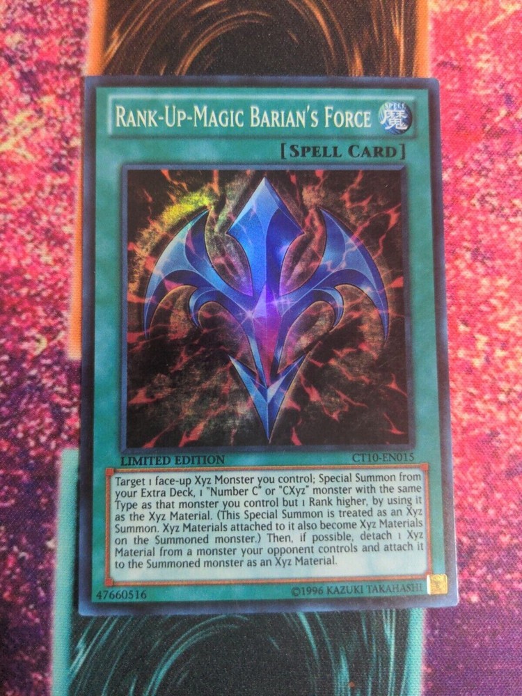 You are bidding on : 1 x Yu-Gi-Oh Mega Tin RANK-UP-MAGIC BARIAN'S FORCE (Super Rare - Limited Edition) CT10-EN015 All cards are in Near Mint condition unless specified Pictures are stock pictures ONLY it is not of the actual card How we identify the condition of the card: Near Mint: Most of the time cards in this condition are pack fresh but, the card may have minor flaws that are not visible with a quick inspection, small white dots or scratches that you have to closely examine the card to see. Excellent: Overall the card looks near mint but may have minor scratches, slightly worn edges that are visible but they do not interfere with the way the card looks. Lightly Played: Similar to a card in excellent condition except there is more whitening around the edges and the corners are a little more worn or slight bends or creases that are visible. There might be some slight whitening on the back or front of the card. Imperfections will be visible with a quick inspection. When the card is sleeved the imperfections will not be noticeable and the card will look just like the rest of your cards Played: There is a large amount of whitening around the edges and the corners have a good amount of damage, many scratches, bends and/or creases on the card. When the card is sleeved it can still be played Shipping and Handling : Canada Shipping is $1.50 CAD Tracking is offered for $13 CAD BUT tracking is required on any purchases that are over $50 CAD Please contact us for combined shipping if interested in purchasing multiple cards before paying USA Shipping is $1.99 CAD Regular Mail for all orders under $19.99 Shipping is $7.99 CAD with USPS tracking for all orders $19.99 and over Please contact us for combined shipping if interested in purchasing multiple cards before paying INTERNATIONAL Shipping is $4.99 CAD with regular mail Tracking is offered for $29.99 CAD BUT tracking is required for purchases over $50 CAD Please contact us for combined shipping if interested in purchasing multiple cards before you pay Combined shipping: We offer combined shipping: each and every additional item after the first one is only $0.25 (25 cents). To obtain combined shipping fees, please use the shopping cart or ask for the combined shipping invoice BEFORE you pay. If you pay item-by-item, right away after the purchase, we will not be able to offer you combined shipping anymore. Handling Your order will be shipped 1-3 business days after payment has been received *“Business days” are normal weekdays. Saturdays, Sundays, and major holidays do not count as business days. Cards purchased are packaged and shipped in a sleeve, toploaders, a team bag and an envelope to ensure protection of cards Payment : Payments should be made within 5 days after purchase Epic Cards and Games Any questions feel free to email us and allow 1 day for a response. Thanks for looking! Sales Tax (Canada Only) : Purchases made by Canadian residents are subject to applicable GST/HST, depending on your province/territory. (If you do not agree to this, please do not bid. We have a registered business in Canada and are required by law to charge taxes to anything shipped within the country.) Thank you for shopping with Epic Cards and Games