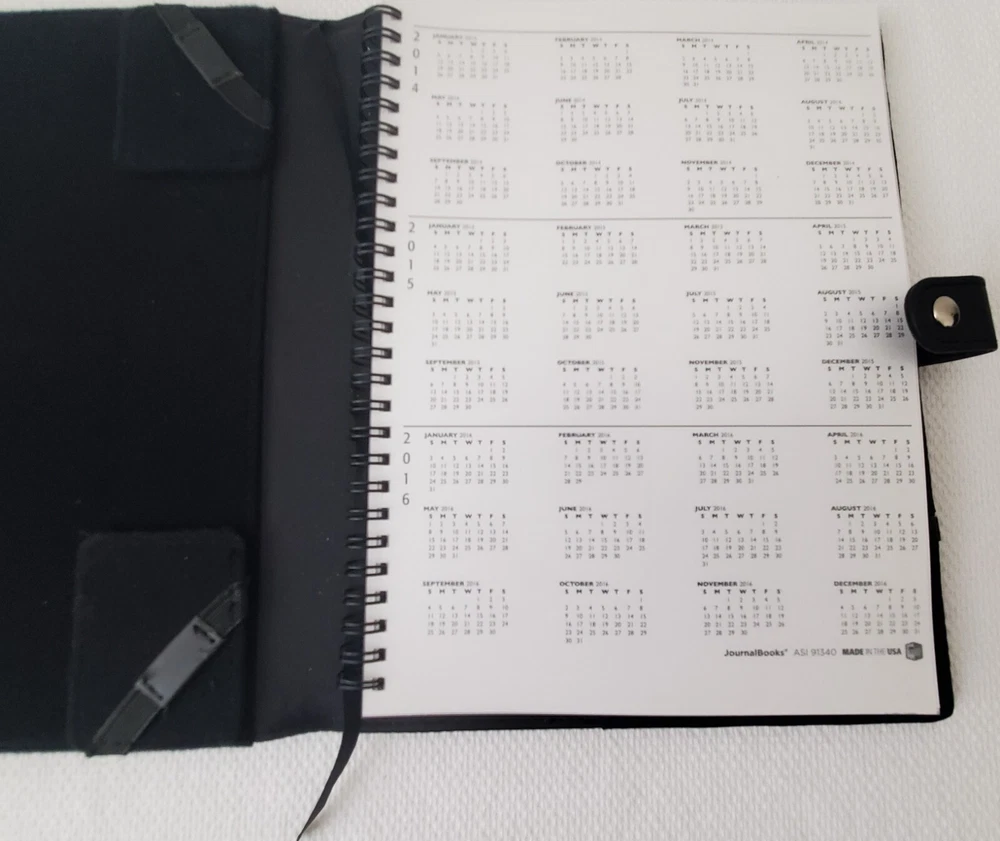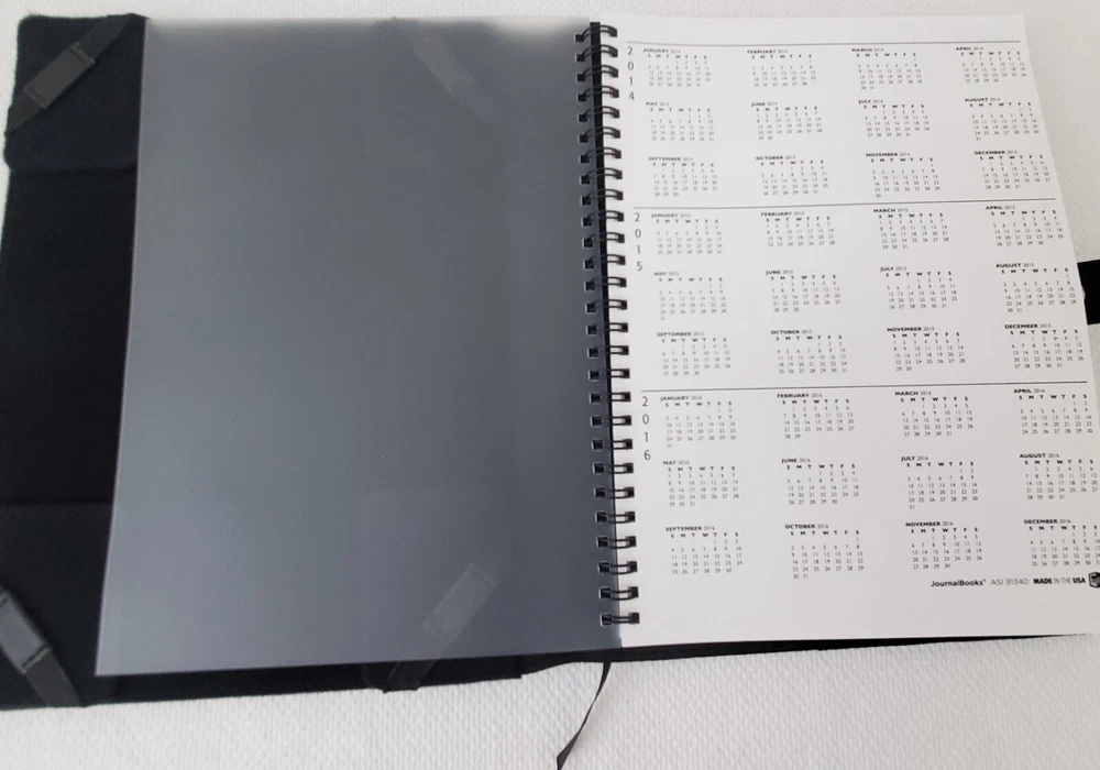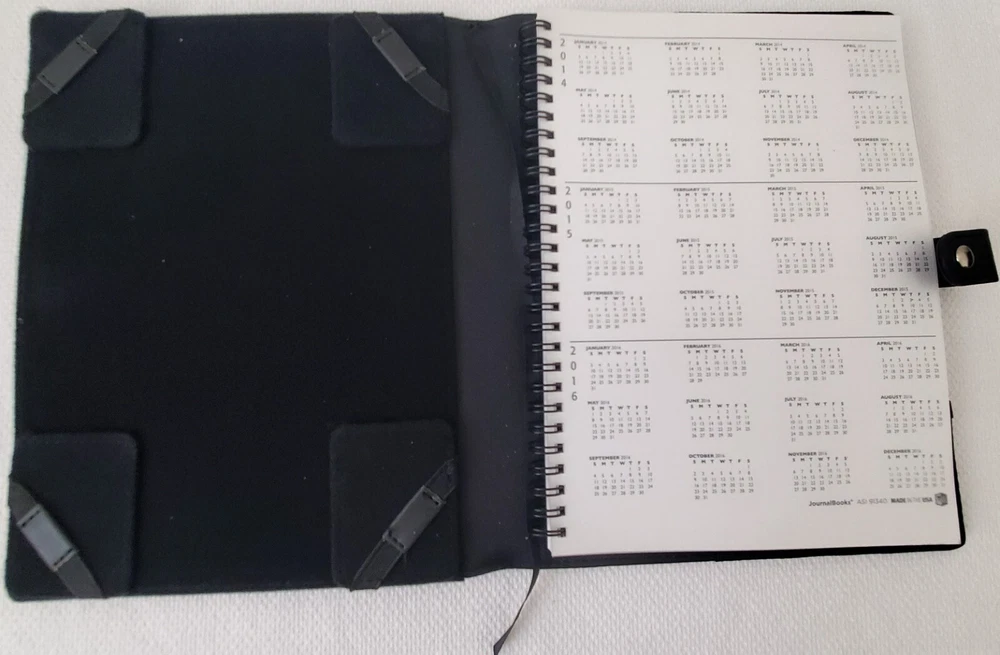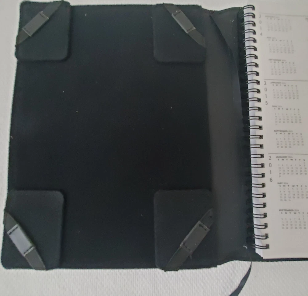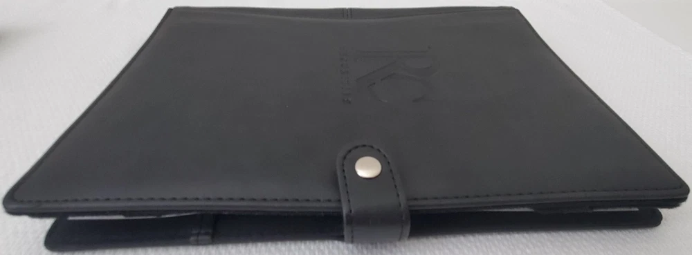 RC Securities - Black Folio with Lined Spiral Notepad, features front exterior slip pocket, interior bookmark ribbon, and back interior business card holder. Approximate measurements: Folio 10” x 8” and notepad 9.5" x 7". Item is in new and never used condition, from a smoke and pet free home. Shipped via USPS Ground Advantage.