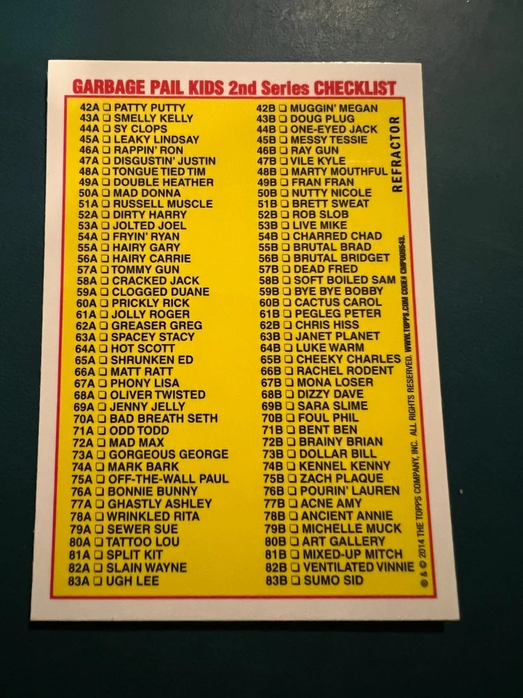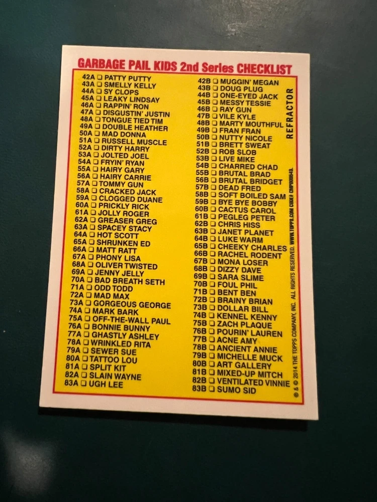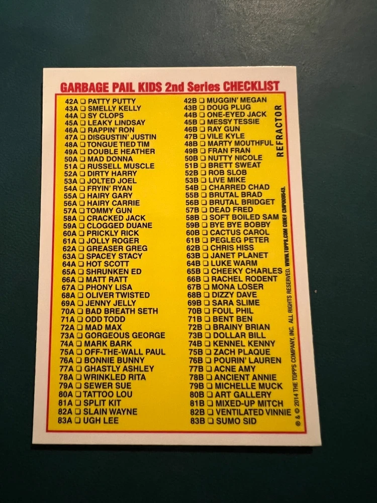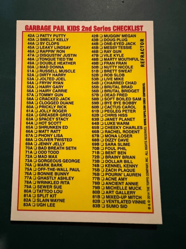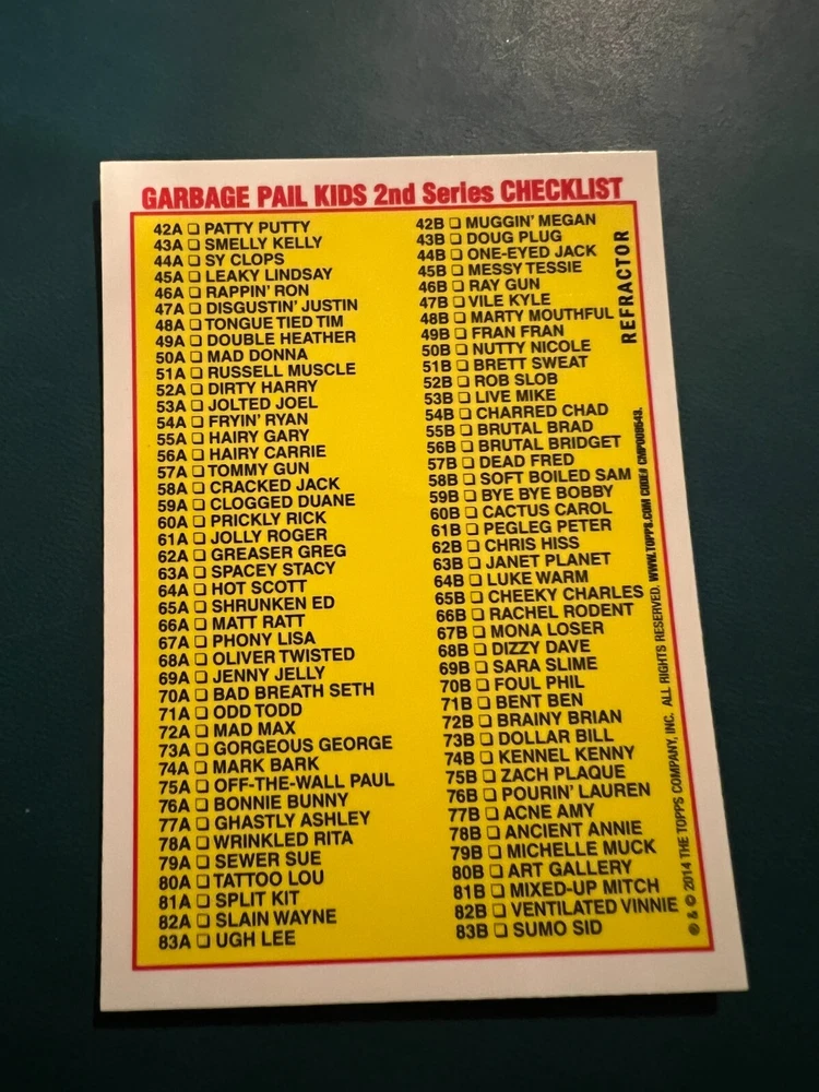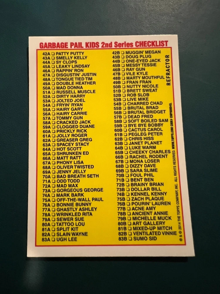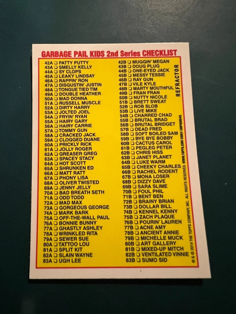 Thank you so much for looking it means a lot to us Visit my store! Check out more Savings here This listing is for your choice of any available card from the drop-down menu above All conditions are variable none will have creases or bends unless its a "poor" listing Some Vintage cards like OS series of GPK 70s star wars and 70s wacky packages will have some wear or off centers i do try my best to weed most out Photos show front and backside of each card These are example only Check out my other listings for more singles for all GPK sets Any questions? Please ask before buying. As with all of my "pick-a-card" listings, I will be shipping with "eBay Standard Envelope". If more then 10 cards are purchased I send them out first class All cards will be shipped in Ridget holders or on big orders plastic sleeves to be included, To insure the cards are free from damage while in transit Please if your looking for card errors or * or die cut errors ask me to confirm prior to buying some cards have * or ** its important to some people If a item has multiple Qualities you will get card shown or better Shipping: To save you the most money we use eBay envelope Service And we ship out everyday even on weekends. We have the listing set at 3-4 days handling time to help with it getting scanned at USPS Generally I would say most everything is delivered with in a week, some cases can take longer we always make sure you are taken care of Payment: We accept payment through paypal. Please contact us for any payments delayed over a day. We will relist the items 3 days after close of auction if payment has not been received. Returns: We offer 30 day returns. Please make sure you use the ebay return system or contact us if you need to return an item. We require that labels are still attached if returning. If this label is removed, we may refuse the return. Any returns after the 30 day and before 60 days will qualify for exchanges only. Anything after 60 days may not be returned. Feedback: Positive feedback will be left immediately after payment is received. If for any reason you are not happy with the purchase, we will make it right. Please contact us before leaving negative feedback or low DSR scores so we can make sure you are 100% satisfied with your buying experience.