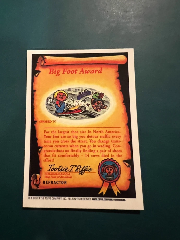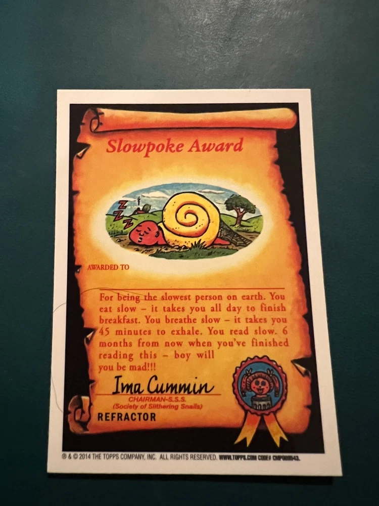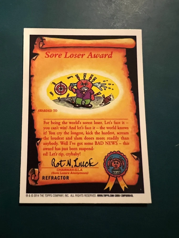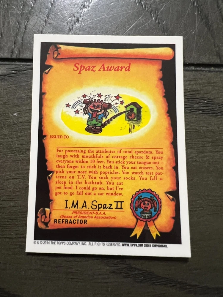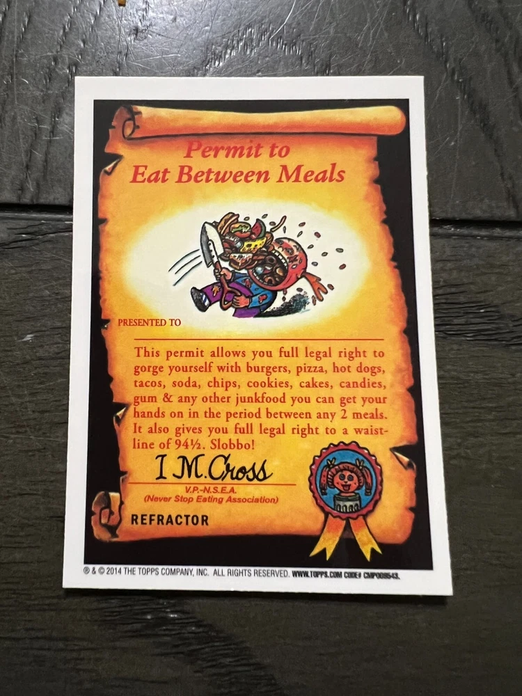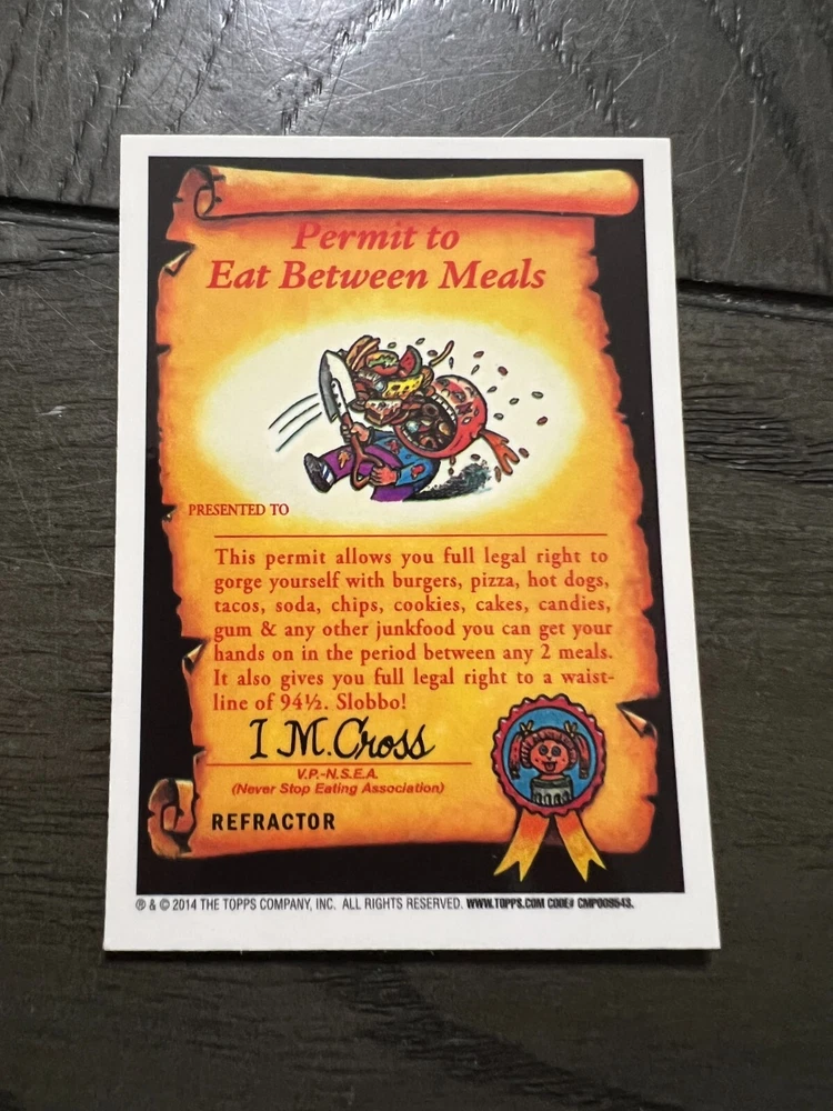 Thank you so much for looking it means a lot to us Visit my store! Check out more Savings here This listing is for your choice of any available card from the drop-down menu above All conditions are variable none will have creases or bends unless its a "poor" listing Some Vintage cards like OS series of GPK 70s star wars and 70s wacky packages will have some wear or off centers i do try my best to weed most out Photos show front and backside of each card These are example only Check out my other listings for more singles for all GPK sets Any questions? Please ask before buying. As with all of my "pick-a-card" listings, I will be shipping with "eBay Standard Envelope". If more then 10 cards are purchased I send them out first class All cards will be shipped in Ridget holders or on big orders plastic sleeves to be included, To insure the cards are free from damage while in transit Please if your looking for card errors or * or die cut errors ask me to confirm prior to buying some cards have * or ** its important to some people If a item has multiple Qualities you will get card shown or better Shipping: To save you the most money we use eBay envelope Service And we ship out everyday even on weekends. We have the listing set at 3-4 days handling time to help with it getting scanned at USPS Generally I would say most everything is delivered with in a week, some cases can take longer we always make sure you are taken care of Payment: We accept payment through paypal. Please contact us for any payments delayed over a day. We will relist the items 3 days after close of auction if payment has not been received. Returns: We offer 30 day returns. Please make sure you use the ebay return system or contact us if you need to return an item. We require that labels are still attached if returning. If this label is removed, we may refuse the return. Any returns after the 30 day and before 60 days will qualify for exchanges only. Anything after 60 days may not be returned. Feedback: Positive feedback will be left immediately after payment is received. If for any reason you are not happy with the purchase, we will make it right. Please contact us before leaving negative feedback or low DSR scores so we can make sure you are 100% satisfied with your buying experience.