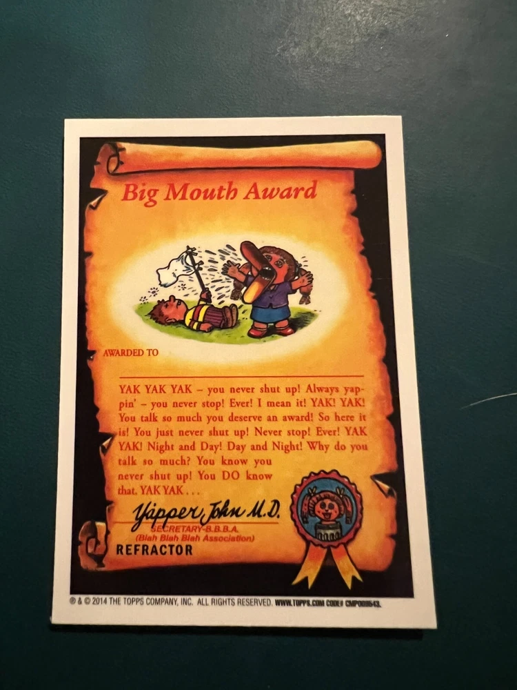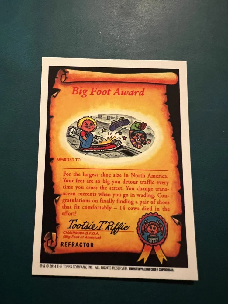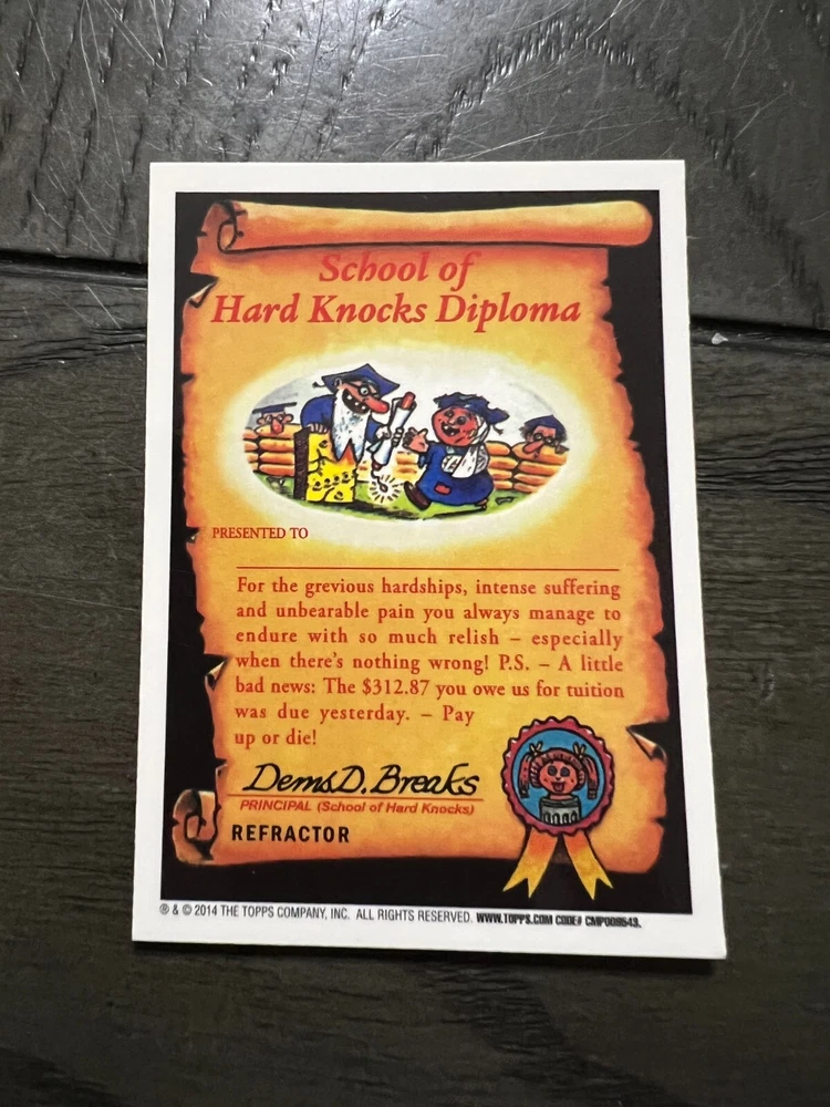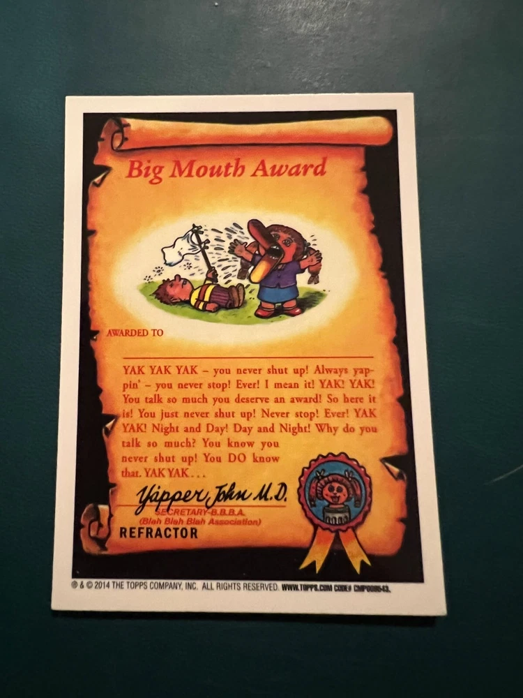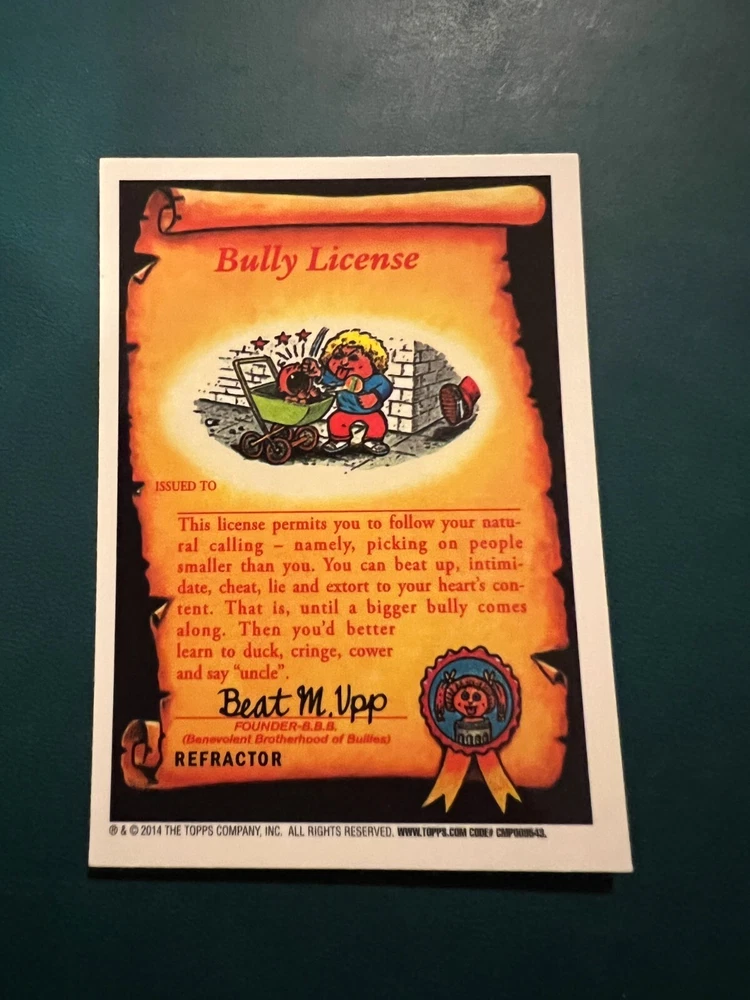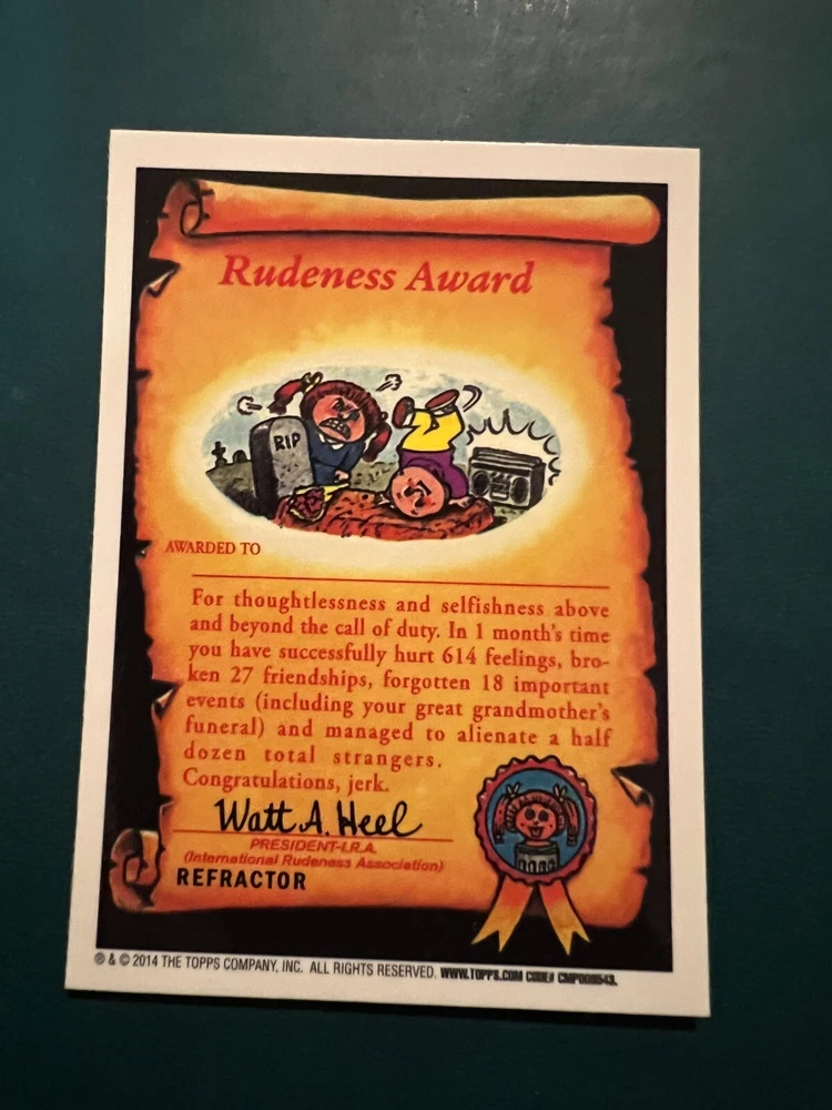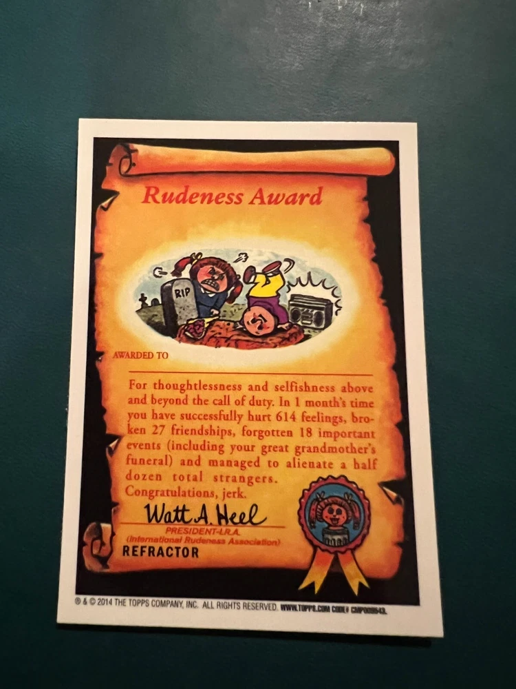 Thank you so much for looking it means a lot to us Visit my store! Check out more Savings here This listing is for your choice of any available card from the drop-down menu above All conditions are variable none will have creases or bends unless its a "poor" listing Some Vintage cards like OS series of GPK 70s star wars and 70s wacky packages will have some wear or off centers i do try my best to weed most out Photos show front and backside of each card These are example only Check out my other listings for more singles for all GPK sets Any questions? Please ask before buying. As with all of my "pick-a-card" listings, I will be shipping with "eBay Standard Envelope". If more then 10 cards are purchased I send them out first class All cards will be shipped in Ridget holders or on big orders plastic sleeves to be included, To insure the cards are free from damage while in transit Please if your looking for card errors or * or die cut errors ask me to confirm prior to buying some cards have * or ** its important to some people If a item has multiple Qualities you will get card shown or better Shipping: To save you the most money we use eBay envelope Service And we ship out everyday even on weekends. We have the listing set at 3-4 days handling time to help with it getting scanned at USPS Generally I would say most everything is delivered with in a week, some cases can take longer we always make sure you are taken care of Payment: We accept payment through paypal. Please contact us for any payments delayed over a day. We will relist the items 3 days after close of auction if payment has not been received. Returns: We offer 30 day returns. Please make sure you use the ebay return system or contact us if you need to return an item. We require that labels are still attached if returning. If this label is removed, we may refuse the return. Any returns after the 30 day and before 60 days will qualify for exchanges only. Anything after 60 days may not be returned. Feedback: Positive feedback will be left immediately after payment is received. If for any reason you are not happy with the purchase, we will make it right. Please contact us before leaving negative feedback or low DSR scores so we can make sure you are 100% satisfied with your buying experience.