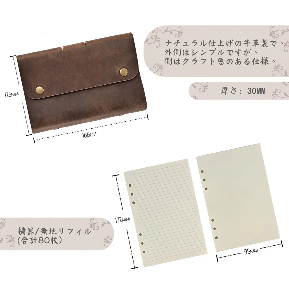 c10c09wdrn Thank you for visiting our page ROTERDON System Notebook Genuine Leather Notebook A6 80 Refills 6 Holes (Ring In [ Brand ] :ROTERDON Detail [ Condition ] New [Made with Crazy Horse Leather] After being carefully coated with natural wax, it is buffed and polished to create a smooth and luxurious finish. This is the only notebook in the world that is handcrafted by craftsmen! Scuffs and irregularities change the tone of the leather, creating the rich, multi-colored luster that only the finest natural leather can provide. (Please note that since it is natural leather, the color will change the more you use it. You can enjoy your own taste with a notebook that changes over time.) ■ [Luxurious] Thick stitching by skilled craftsmen creates a luxurious feel and a timeless design that is durable. It has a simple appearance, but the more you use it, the more it tastes like it! ■[Excellent functionality] Comes with a pen holder and pockets for business cards, sticky notes, etc., making it even more convenient and motivating to use it. ■[Excellent mobility] Compact and light, it has excellent mobility. I usually put it in my bag. It's not that heavy either. It's the perfect size for your mobile phone. ■[Natural leather/Please note] This product is made using natural leather, so the color and texture may vary slightly depending on the product. In addition, please enjoy the characteristics of leather products such as blood vessel marks, small scratches, and uneven coloring. ★★★Please note: The fountain pen and postcard in the photo are for reference only and are not included. ★★★ [ Country of Manufacture ] If "Made in Japan" is NOT described on whole listing page, Items are manufactured in other country (China, Vietnam and etc.). [ Manual & Menu Language ] We treat Japanese Market Usage Items. So items have only Japanese Manual & Menu Language. Please contact us if you would like to know more details. *Japanese Menu Only : Panasonic Camera *English Menu available : Nikon, Canon [ Warranty ] Japanese Warranty Only. Buyers need to send item to us in Japan to repair with warranty & own all shipping cost. If you need to repair item in your country with warranty, please do not order this item. [ Electronics ] Japan Usage Item. Voltage:100V, Plug :Type A, FM Tune:70-90MHz Please check your country's condition for use. [ Multiple sizes and colors ] Before your payment, please contact us about stock of size & color. International Buyers [ International Buyers - Please Note ] - Import duties, taxes and charges are not included in the item price or shipping charges. These charges are the buyer's responsibility. - Please check with your country's customs office to determine what these additional costs will be prior to bidding/buying. - These charges are normally collected by the delivering freight (shipping) company or when you pick the item up. Please do not confuse them for additional shipping charges. Shipping [ Shipping Address ] We ship to only address where be registered on eBay. [ Combine shipping & Large Quantity ] Please contact us for combine shipping & large quantity deals before payment. We do our best for you!!!!! [ Li-ion Battery ] Some countries( Germany,France,Italy,Mongolia,SriLanka,Turkey,Nigeria and more.) does not accept lithium battery via EMS, SAL by Post Office. Please check your country's rule yourself. If we receive order from buyer who located in these countries, we will ask buyer to choose 1 from 3. 1. Ship without Ri-ion Battery removed from item. 2. Change shipping method to Fedex or DHL with additional shipping cost. 3. Cancel