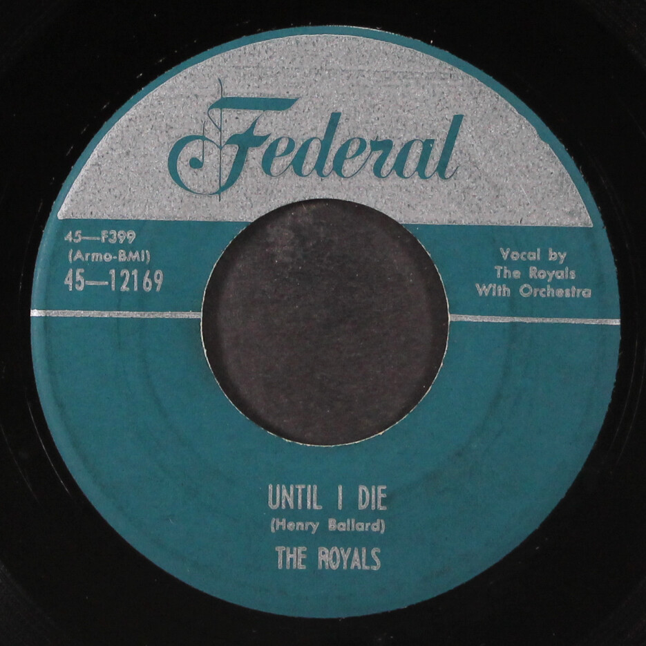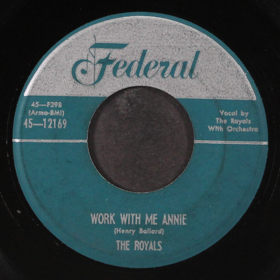 Item Details ROYALS work with me annie / until i die Label: FEDERAL 12169 Format: 7" Single (45 RPM) Disc Condition: VG , clean! Genre: Vocal Groups Edition: silver top Price: $40 Shipping Info All orders are processed and shipped within 2 business days of receipt. We package and ship our vinyl records with the greatest care, using extra-thick packaging to ensure that your rare and collectible vinyl records arrive in pristine condition. Domestic Shipments USPS Priority Mail LP Only Shipments $15 for 1st LP + $2 each additional LP 45s, CDs and Cassettes $10.00 for 1st + $1 each additional Mixed Shipments $15 for 1st LP + $2 each additional LP / $1 each additional 45/CD/Cassette Oversized CDs, Cassettes, & 45s $14 base rate for 1st / $1 base rate each additional oversized + $1 each 45/CD/Cassette USPS Media Mail LP Only Shipments $7 for 1st LP + $1 each additional LP Mixed Shipments $7 for 1st LP + $1 each additional Oversized CDs, Cassettes, & 45s $6 base rate for 1st + $1 each 45/CD/Cassette Note: All domestic shipments are insured. International Shipments Air Mail LP Only Shipments $20 for 1st LP + $5 each additional LP 45 Only Shipments $18 for 1st 45 + $1 each additional 45 Mixed Shipments $20 for 1st LP + $5 each additional LP / $1 each additional Oversized CDs, Cassettes, & 45s $19 base rate for 1st / $1 each additional oversized + $1 each 45/CD/Cassette Note: Double LPs, box sets, etc. will incur additional shipping costs as indicated above. Record Grading Grade Explanation SS Still Sealed In factory-fresh condition. M Mint We don't use this grade. M- Mint Minus A near perfect, probably unplayed record. VG+ Very Good Plus Close to like new with only superficial signs of use that don't affect play. Only well cared for records will grade out to VG+. Will satisfy all but the most demanding collector. VG Very Good A used, reasonable copy. There will be obvious signs of wear and the possibility of light surface noise between tracks or during quiet passages, but still quite nice. VG- Very Good Minus Significant wear and marks and usually quite noticeable surface noise. G+ Good Plus In the record world, 'Good' is not good! From here on down (Fair, Poor), we're talking about beat-up records. * Unless noted, every record is an original issue for the label and catalog number. About Us Records By Mail offers one of the most comprehensive selections of vinyl LPs and 45s available anywhere. Housed in an 8,000 square foot warehouse that currently holds over 2 million records, Craig and his talented, dedicated staff serve music lovers in more than 60 countries. Records by Mail prides itself on maintaining one of the largest selections of rare vinyl records available anywhere—online or off. We are always looking to improve the quality of our service, and we update our database every day, so expect new titles and improvements with alarming frequency. Browse Categories Rock & Pop Soul Blues & R&B Oldies Jazz Funk Vocal Groups Rockabilly Country Vocalists Brazilian Punk/New Wave Easy Listening Soundtracks Reggae Black Gospel Rap/Hip-Hop Latin Our Guarantee We guarantee every item we sell to be as listed. We endeavor to provide superior service, but if we make an error, we'll make every effort to make it right either by refunding all costs involved, or adjusting the selling price to everyone's satisfaction.
