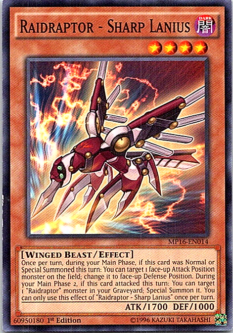 Raidraptor Sharp Lanius MP16-EN014 YuGiOh 1st Edition Light Play