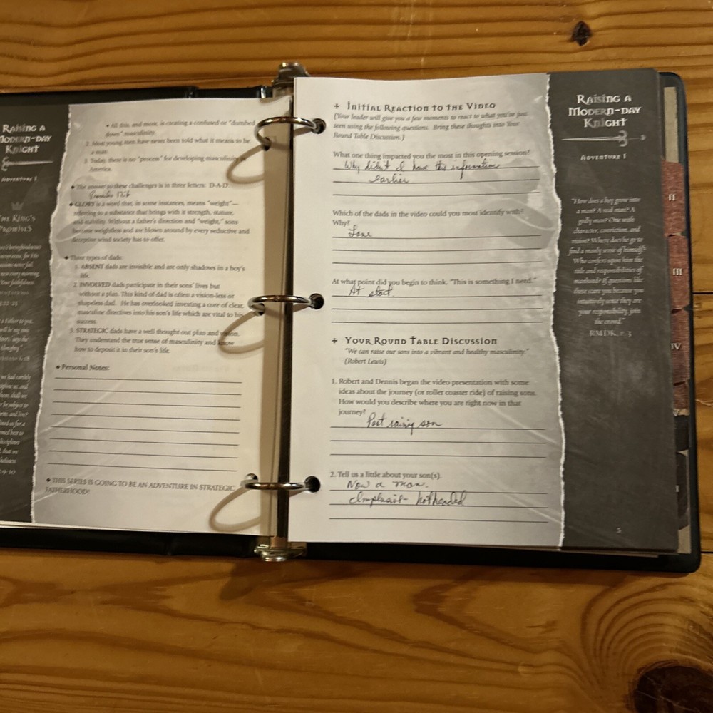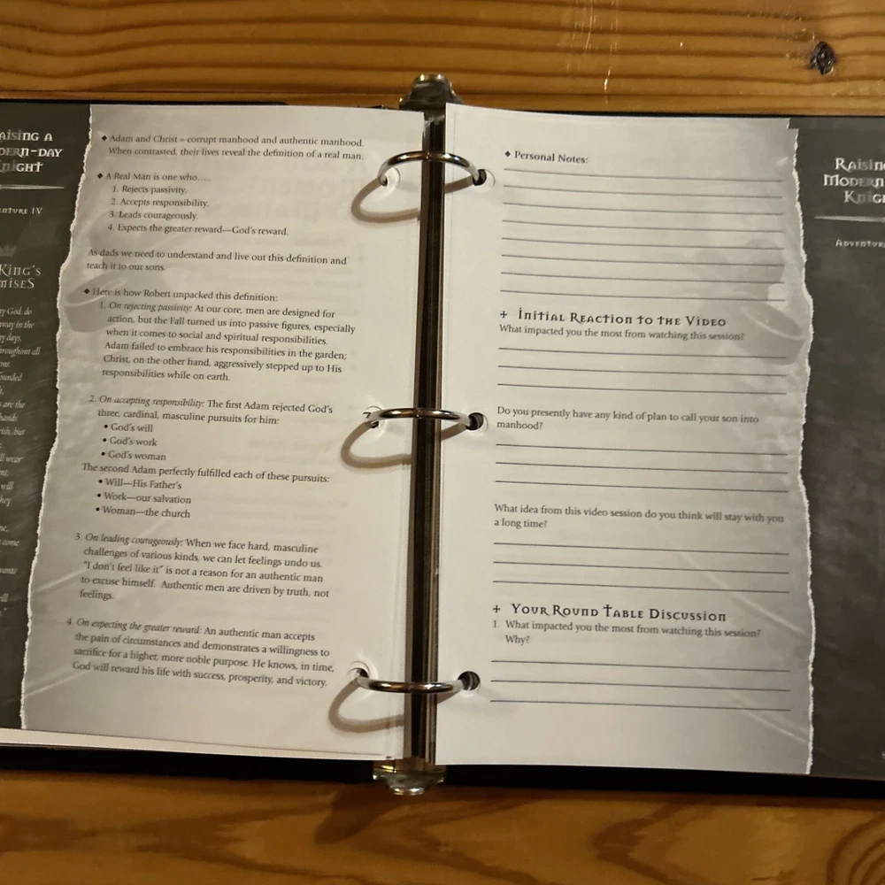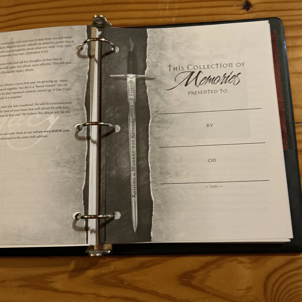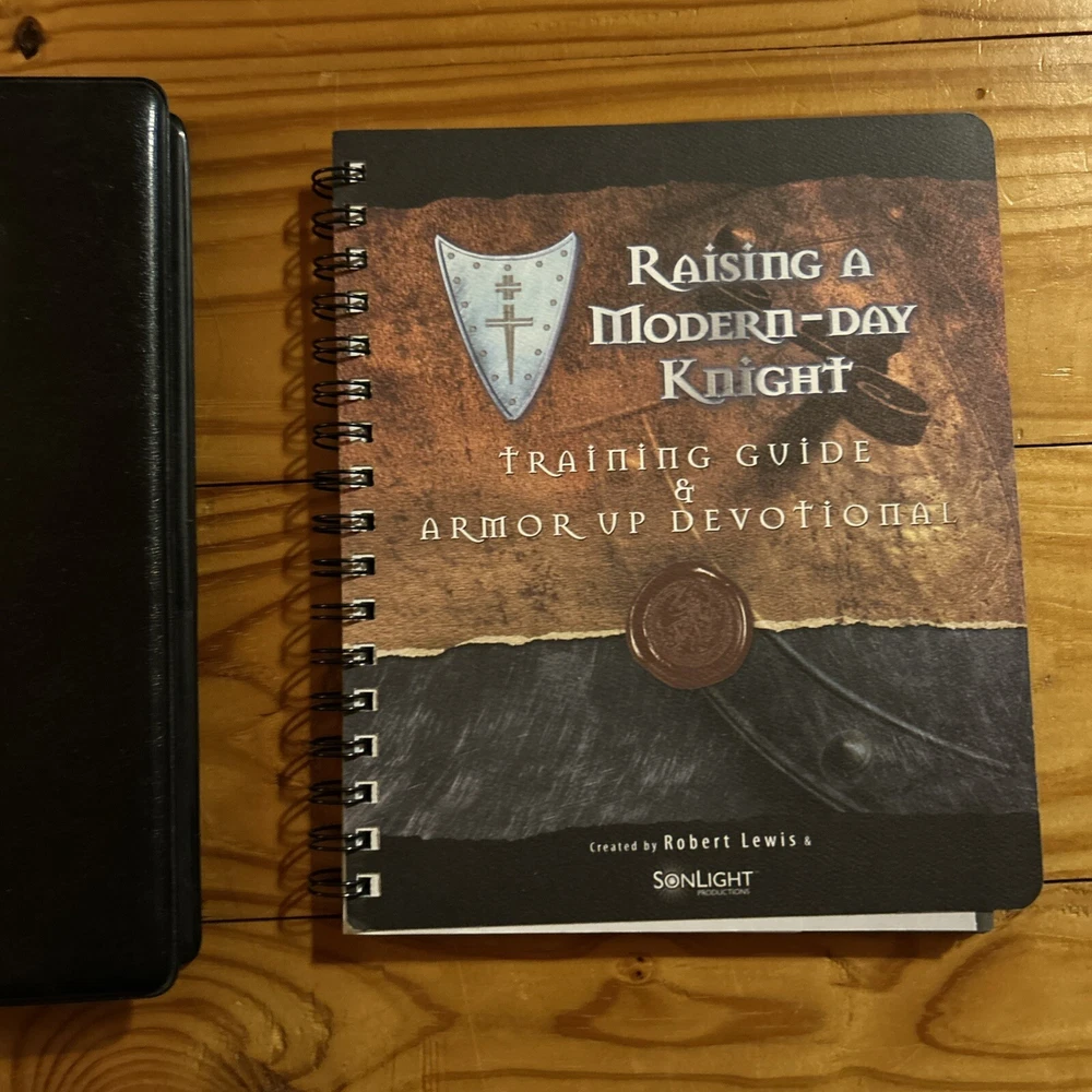 Preowned Raising A Modern Day Knight Training Guide & Legacy 3-ring Album. Lightly used, see photos. Most pages are blank. NO DVD Also included: Training Guide & Armour Up Devotional spiral book, excellent, like new. Also included: Leaders Guide, also like new
