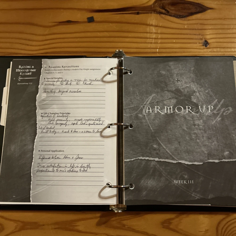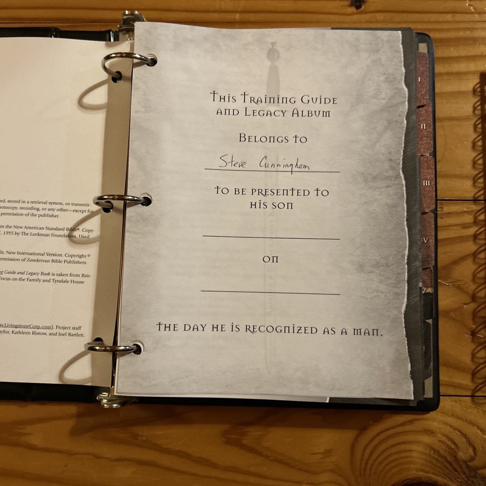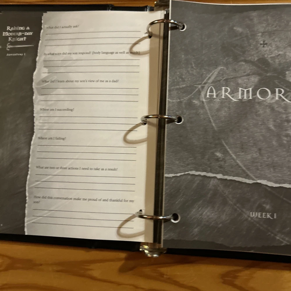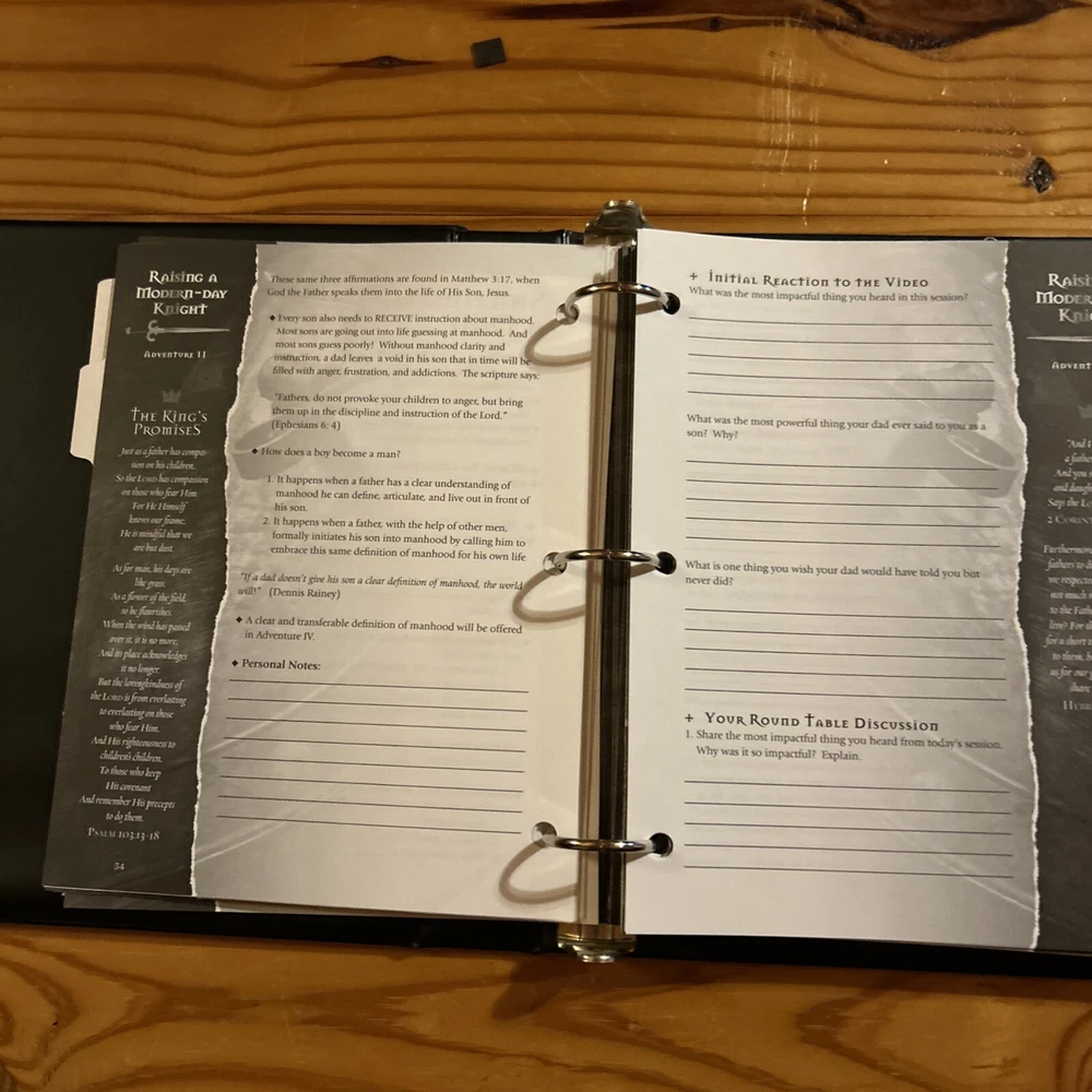 Preowned Raising A Modern Day Knight Training Guide & Legacy 3-ring Album. Lightly used, see photos. Most pages are blank. NO DVD Also included: Training Guide & Armour Up Devotional spiral book, excellent, like new. Also included: Leaders Guide, also like new