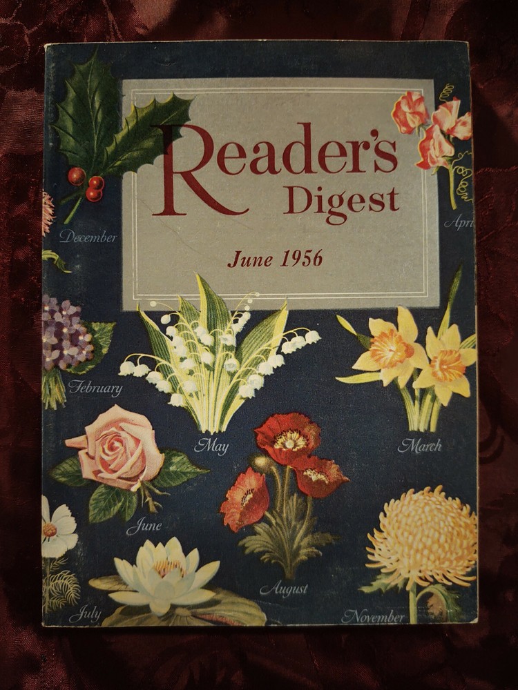 SEE BELOW for MORE MAGAZINES' Exclusive, detailed, guaranteed content description!* Careful packaging, Fast shipping, and EVERYTHING is 100% GUARANTEED. TITLE: THE READERS DIGEST "Articles of Lasting Interest" -- Own a piece of history, fascinating to read -- The Readers Digest captures what life was like at any given time better than any other magazine, because it is the best of all of them! -- Exclusive MORE MAGAZINES detailed content description, below! * ISSUE DATE: June 1956; Vol. 68, No. 410 CONDITION: Size approx 6" X 9", Digest sized magazine. COMPLETE and in clean, VERY GOOD condition. (See photo) IN THIS ISSUE: [Use 'Control F' to search this page. MORE MAGAZINES' exclusive detailed content description is GUARANTEED accurate for THIS magazine. Editions are not always the same, even with the same title, cover and issue date.] This description copyright MOREMAGAZINES. 1 2 3 4 5 6 7 8 9 10 11 12 13 14 15 16 17 COVER: Design By Robert H. Blattner. Drama in Real Life: Lost At Sea By Robert Littell. [Interesting article, and ORIGINAL to this issue!] Stop The Crime That Breeds Crime, By Frederic Sondern, Jr. [Interesting article, and ORIGINAL to this issue!] Are The Russians Ahead Of Us In Nuclear Science?, By Lin Root. What Is The Truth About Bridey Murphy, By Herbert Brean. Blood Pressure Tells Your Story, By J. D. Ratcliff. Are U. S. School Children Being Cheated?, By Frances V. Rummell. [Interesting article, and ORIGINAL to this issue!] Triumph Of Terror In China, From Time. Judge Irving Ben Cooper's Experiment, By Frederick Sondern, Jr. The Strange Story Of Hector, The Stowaway Dog, By Captain Kenneth Dodson. The Grass Is Never Greener By Robert Thomas Allen. God's Angry Man: Trevor Huddleston In South Africa, By Clarence W. Hall. Antibiotics To Keep Foods Fresh, By Milton Silverman. The Best Advice I Ever Had By Samuel Goldwyn, "World Famous Motion Picture Producer". [Fascinating article, and ORIGINAL to this issue!] When San Francisco Went Up In Flames, By Robert O'Brien. He Never Asked That A Thing Be Easy, By Virginia Gordon. [Interesting article, and ORIGINAL to this issue!] You Can't Beat The Dutch At Land Making, By Wolfgang Langewiesche. Serge Rubinstein And The Life And Death Of A Twisted Genius, By Lester Velie. Our Most Wanted Men: College Seniors, By Herrymon Maurer. Denmark's Friendly King -- Frederick IX, By Robert Littell. [Interesting article, and ORIGINAL to this issue!] 24 Hours In The Fight Against Cancer, By Evan Mcleod Wylie. Can You Get Your Money Back?, By Jay G. Sykes. What Do You Do About Hairdo? By Robert Thomas Allen. I Disarmed The A Bomb That Wouldn't Explode By Dr. John C. Clark As Told To James Joseph. Needed: A New Foreign Economic Policy By Peter F. Drucker. Annie Oakley Of The Wild West By Walter Havighurst "Her Feats Remain Almost Unbelievable To This Day" [Beautiful Story Of An Amazing Woman]. Closed Circuit Tv Comes Of Age, By Don Wharton. A Flood Prevention Plan That Works, By Peter Farb. The Most Unforgettable Character I've Ever Met (Librada Ortado) By Patricia K. Brooks. [Interesting article, and ORIGINAL to this issue!] In Politics, Economy Does Not Begin At Home, By Alan L. Otten. Youth Power Unlimited!, By Donald Robinson. Paul Rusch Brought An Answer To Japan, By Joseph Phillips. The Four Minute Mile -- The Man Who Achieved The "Impossible" Tells How He Did It, By Roger Bannister. [Interesting article!] The Great Rose Lottery, By Frank J. Taylor. When The Mayflower Sails Again By John Allan May. They Put The Automobile On Air -- Michelin Tire Company, By Andre Visson. Franz Hals And His Heraty Portraits By Malcolm Vaughan. [Interesting article, and ORIGINAL to this issue!] My Down East By Louise Dickinson Rich. The Swiss Among Us, By Albert Q. Maisel. [Interesting article, and ORIGINAL to this issue!] Hands Across The Fence By Richard M. Nixon. The Grass is Never Greener, by Robert T. Allen. Vintage Ads For: Goodyear, Gaines Dog Food, Evinrude, Away All Boats, In Technicolor And Vistavision -- Coming Soon To A Theater Near You, American Express Travelers Checks, Kraft, Chevrolet, Full Time Power Steering From Chrysler, Life Savers Choco Mint, More! CHECK our other Reader's Digest listings -- we have the LARGEST stock of Reader's Digest back issues available anywhere! Use 'Control F' to search this page. * NOTE: OUR content description is GUARANTEED accurate for THIS magazine. Editions are not always the same, even with the same title, cover and issue date. Each listed above is of at least one page, most average 3 pages. Some are original articles. ALSO in this issue: the usual great tidbits, jokes and sidebars that Readers Digest was famous for. (PLUS there is more actual CONTENT in these vintage issues than in the current ones!) There is no better Birthday gift or Anniversary present than a copy of this marvelous vintage magazine -- it captures the time perfectly! This description © Edward D. Peyton, MORE MAGAZINES. Any un-authorized use is strictly prohibited. This description copyright MOREMAGAZINES. 18 19 20 21 22 23 24 25 26 27 28 29 30 31 Careful packaging, Fast shipping, and EVERYTHING is 100% GUARANTEED!
