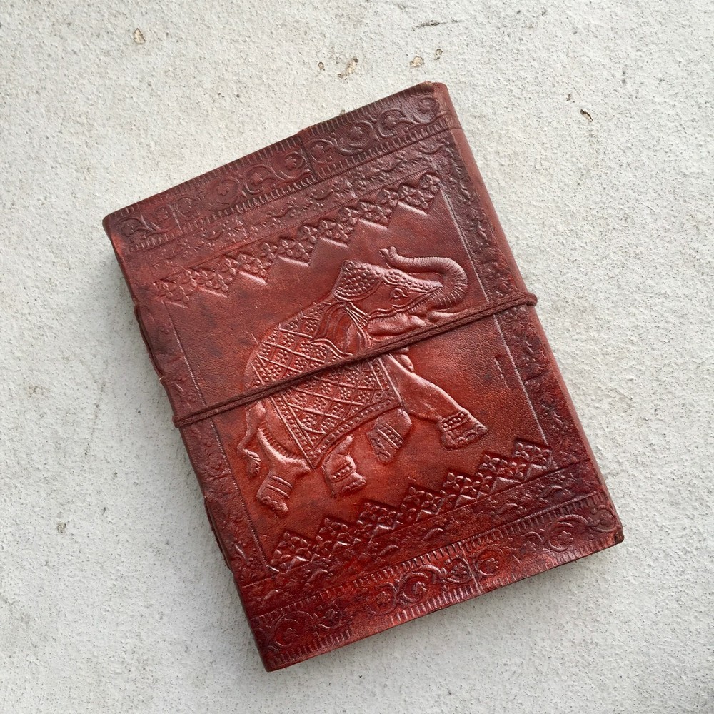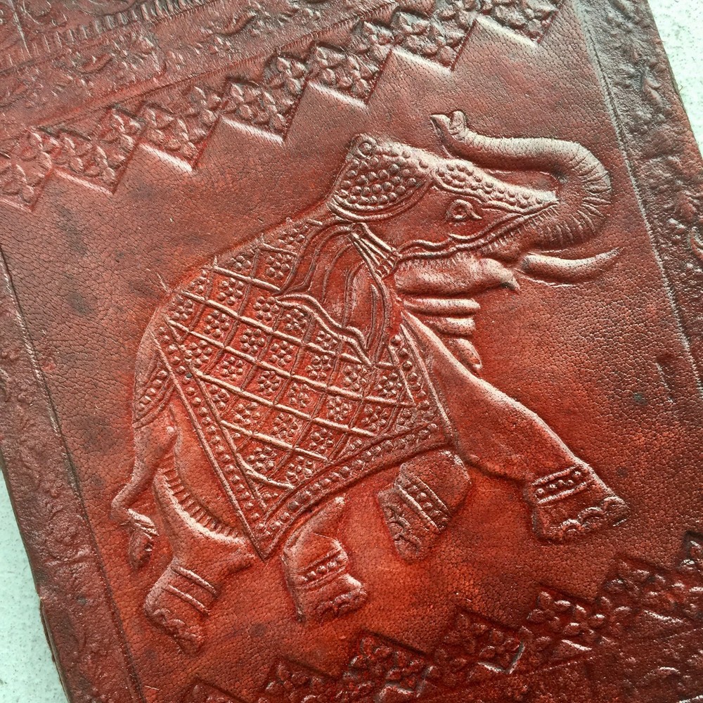 Vintage Red Leather Journal with Embossed Elephant Travel Writing Diary
