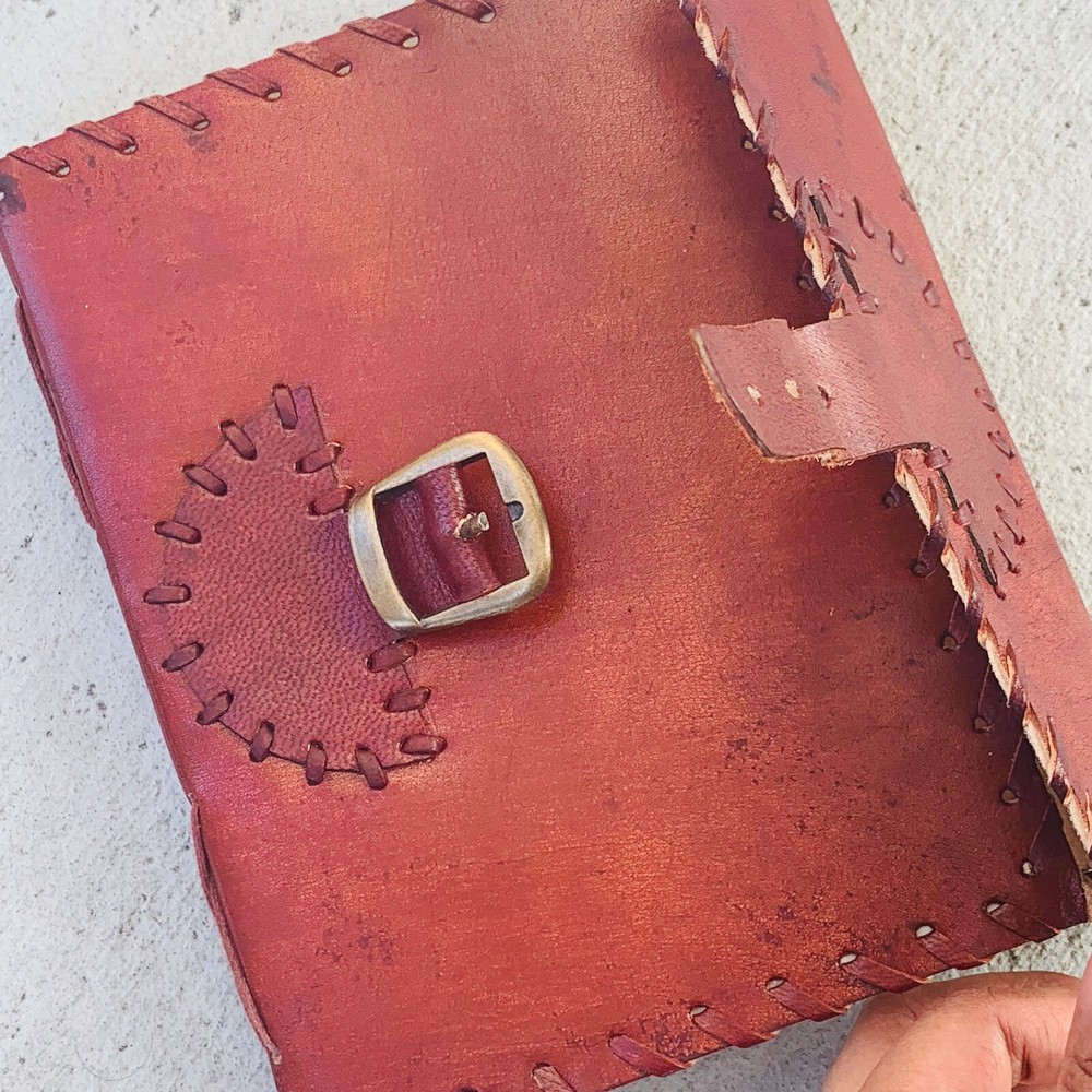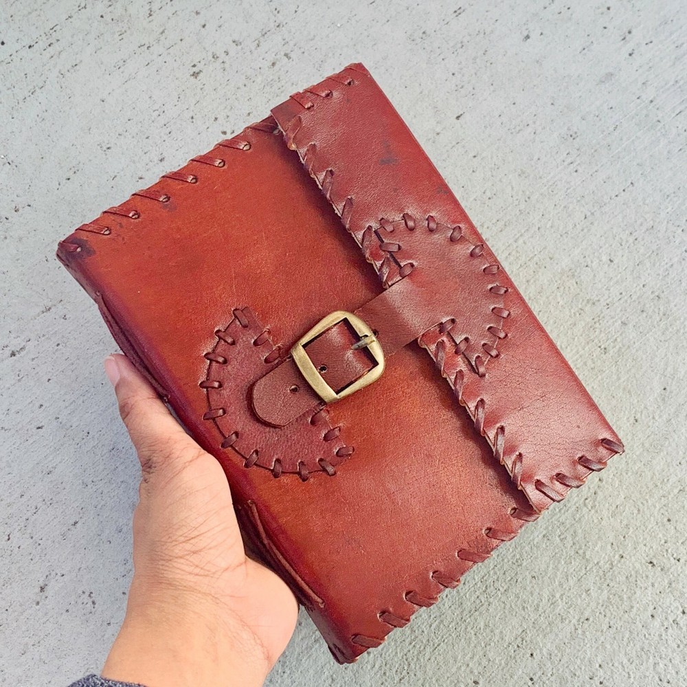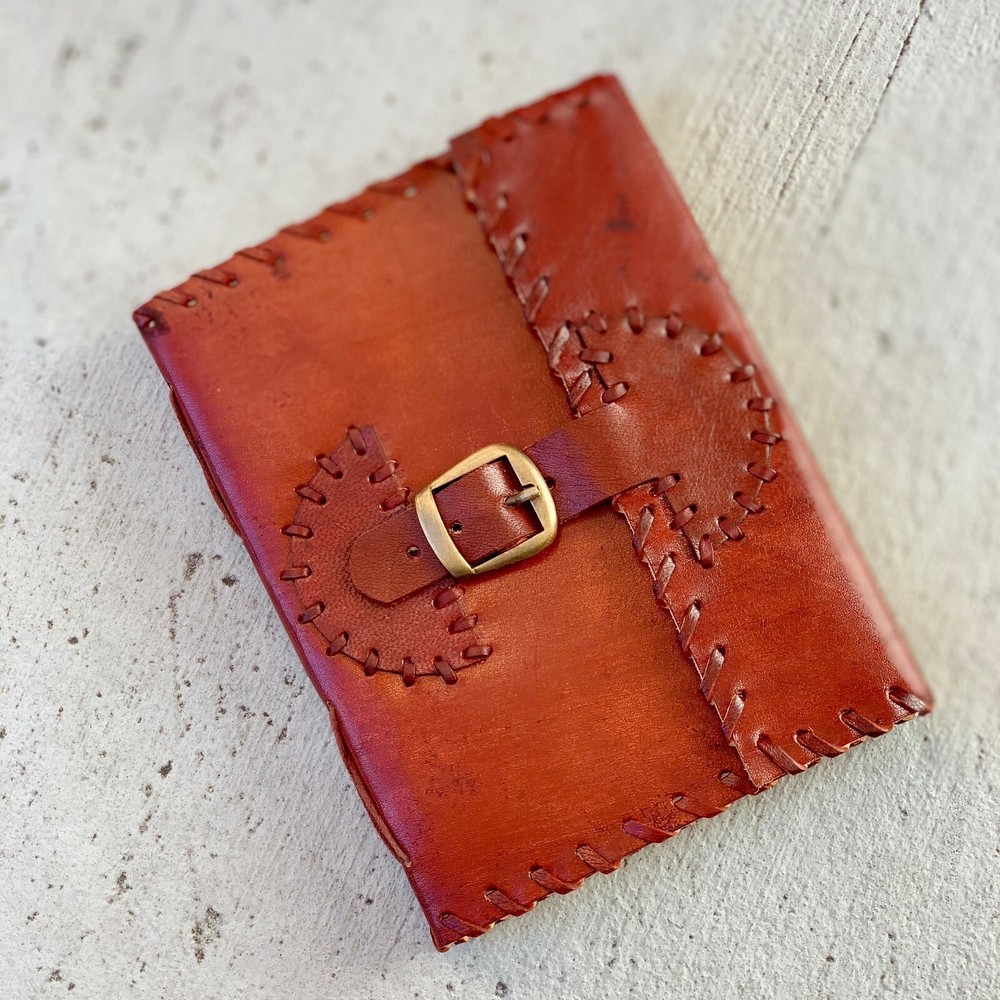 These journals are hand made from leather and hand embossed. The paper is naturally treated cotton paper which are best suited for writing, noting, jotting, sketching, doodling etc. Product Dimensions: Length - 7 in * Width - 5 in - 200 pages approximately Leather used: Bull hide or goat leather Paper Used: SAVE TREES with us - we use eco friendly recycled cotton paper (recycled 100% cotton rag) Since these journals are fully handmade, there could be slight variations in the embossing or sewing or color in every batch *****A little about these journals:******** We were lucky to once find a collection of vintage journals from the 1990's which was handmade and we immediately fell in love with them. Hence we have started to make our own line of journals with our own designs and the latest trendy designs. Each journals is designed and prototyped by me and then the rest of the process is handled by a production partner with help of necessary hand tools Each Journals is fully hand made! We create embossing plates for the designs and those designs are hand embossed on the leather and then they are hand sewn into books. The paper used in these journals are also handmade with cotton. ( Save trees with us as the papers are 100% recycled and handmade) My clients usage: Gifts for him , valentines gift, anniversary or wedding or housewarming gifts, home decor, modern home decor and many more these are ready to ship items and will ship within 1-2 business days. If you are an international customer, then I suggest to upgrade to Priority mail so that you can get the tracking number to track the shipment. PLEASE NOTE: If you wish to purchase more than one item at the same time, please send me a message to request if I could do a combined shipping cost.