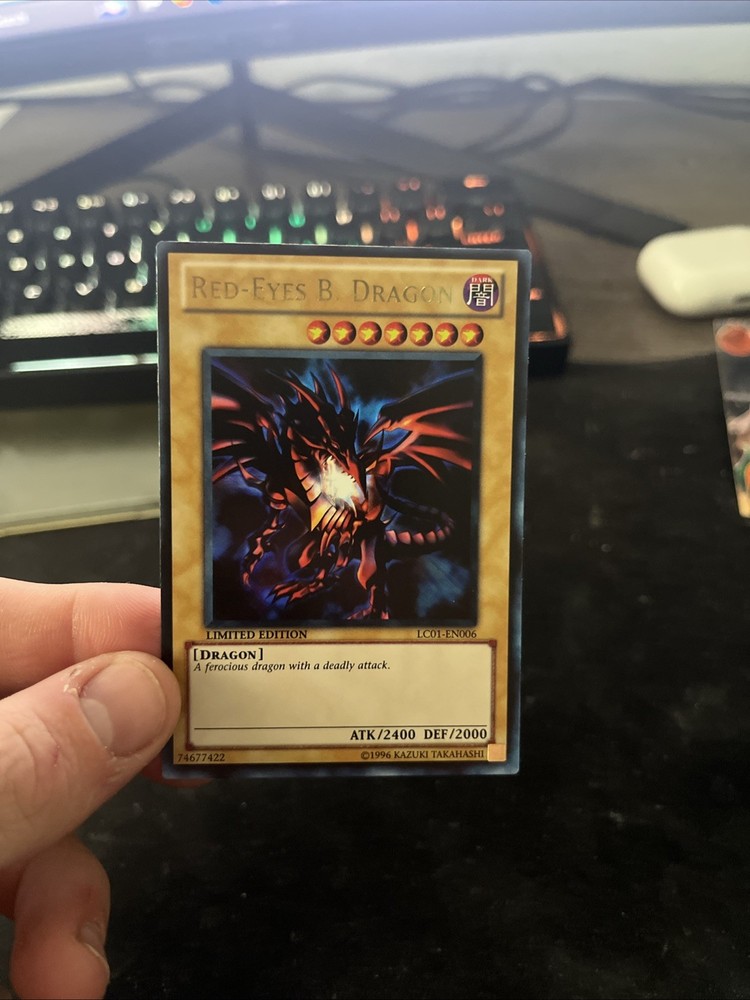 The Red-Eyes B. Dragon LC01-EN006 Yu-Gi-Oh Legendary Collection 1 Limited Edition card is a sought-after collectible in the Yu-Gi-Oh TCG world. This Ultra Rare Dark attribute Dragon type card boasts an impressive defense and attack power of 2000 and 2400 respectively, making it a valuable addition to any player's deck. With its limited edition status and stunning artwork, this card is a must-have for fans and collectors alike.