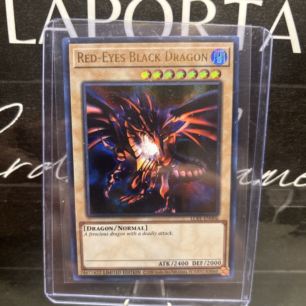 This limited edition Red-Eyes Black Dragon card from the Legendary Collection: 25th Anniversary Edition is a must-have for any serious Yu-Gi-Oh! TCG collector. With an attack/power of 2400 and a defense/toughness of 2000, this ultra rare card is a powerful addition to any deck. Featuring the iconic dark dragon design that has been captivating players for years, this English language card is manufactured by Konami and is a normal type card with the card number LC01-EN006. Don't miss your chance to add this limited edition card to your collection today.