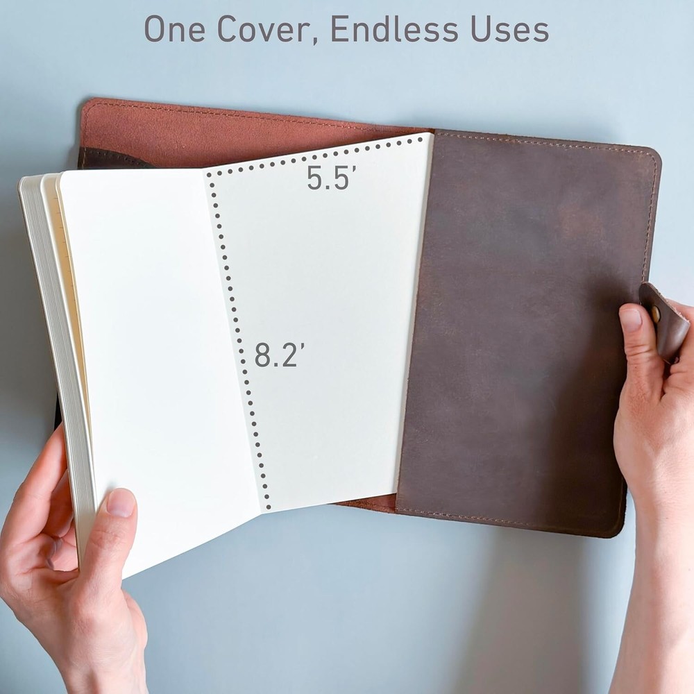 Refillable Genuine Leather Journal, Writing Notebook, 2 Bound Notebooks, Lined and Blank, 200+200 Pages, A5 Cover, Handmade, for Poetry, Writers, Business, Work, Study, College, and Daily Notepad Crafted to Endure – Crafted from genuine vintage leather, this leather journal refillable includes two 200-page A5 notebooks and a snap closure—built to last and made for everyday use. Write Without Waste – The refillable leather journal saves money and waste—just swap A5 notebooks when full. Thick 100gsm paper prevents ink bleed and keeps notes neat and professional. Flat-Lay Functionality – A structured journal leather with flat-lay binding solves the hassle of flimsy covers. Perfect for meetings, writing, or daily planning without distraction. Smart Interior Design – Designed for productivity, this notebook leather includes a pen loop, inner pocket, and card slots—everything you need, all in one organized place. Gift-Ready Elegance – The perfect gift set: this leatherbound notebook journal comes with a leather keychain, bookmark, and gift box—professional, thoughtful, and ready to impress.