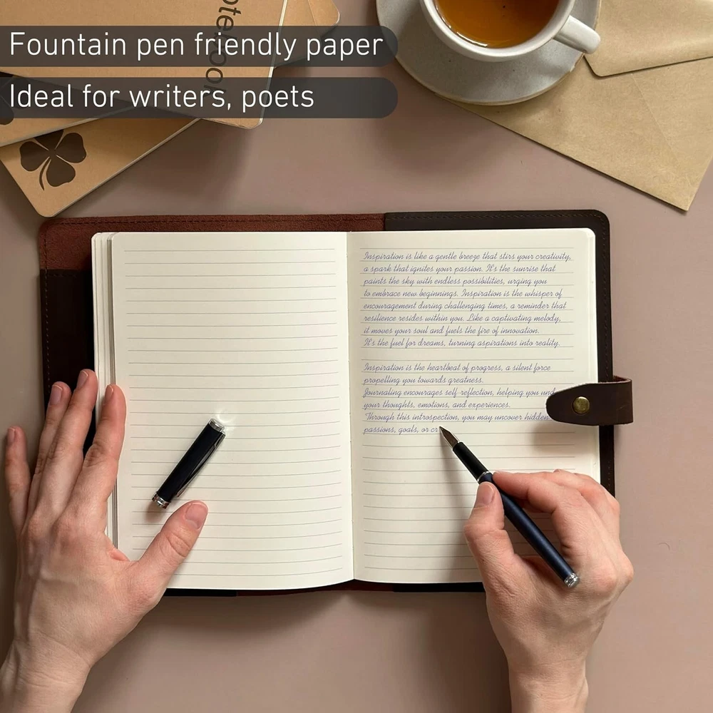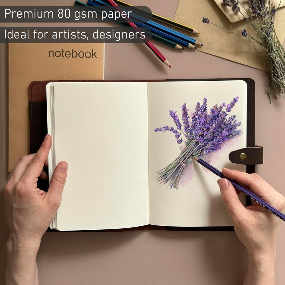 Refillable Genuine Leather Journal, Writing Notebook, 2 Bound Notebooks, Lined and Blank, 200+200 Pages, A5 Cover, Handmade, for Poetry, Writers, Business, Work, Study, College, and Daily Notepad Begin Your Writing Journey: Executive Leather Journal with 2 Bound Notebooks - Live, Plan, Create, Innovate! Perfect for Writers, Business, Work, Study, College, and Daily Notepad Handcrafted Genuine Leather Journal: High Quality, Sturdy, Rustic, Exclusive Patina Effect. Ideal for Writing, Sketching, Planning, and Daily Use. Ultimate Business Organizer: Pen Holder, Inside Pocket, Clasp Padfolio. Ideal for Writing, Planning, Business, Work, Study, and Daily Use. Easy to refill and use for decades: just replace with any A5 Notebook for Scrapbooking, Sketching, Planning, Journaling, and Diarizing. Exact Size: ''' What's in the box: Lined Notebook 200 pages, Blank Notebook 200 Pages, Leather Bookmark, Key Ring. Ideal Gift Box!