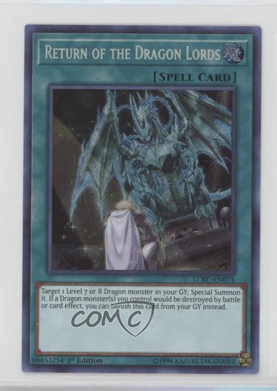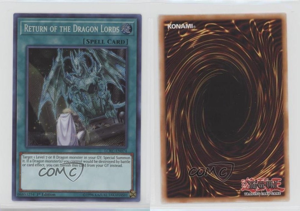 2018 Yu-Gi-Oh! - Legendary Collection Kaiba - [Base] - 1st Edition #LCKC-EN074 Secret Rare - Return of the Dragon Lords COMC Item: 84919350 - YuGiOh Card Search for more: 2018 Yu-Gi-Oh! - Legendary Collection Kaiba Search for more: 2018 Yu-Gi-Oh! - Legendary Collection Kaiba - [Base] - 1st Edition View all of our Listings Auctions Buy It Now About Us Located in the beautiful Pacific Northwest, COMC (Check Out My Cards) is the world's largest consignment service for trading card singles. More than 10,000 people have used our consignment service to list over 50 million trading cards. Find out how we can help you consign your items on eBay by contacting us through eBay messaging. COMC -- "The Safe & Easy Way to Buy & Sell" Raw Condition for Modern Cards Unless otherwise noted, raw modern cards are listed in Near Mint-Mint condition or better. A NM-MT card appears to be Mint at first glance, but upon closer inspection, may exhibit some of the following: minor print defects (e.g. roller marks, print line, dimple), minor scratches, slight edge wear, and slight corner wear. Centering is clearly visible in the images provided and does not factor into our condition assessment. Raw Condition for Vintage Cards Unless otherwise noted, raw vintage cards are listed in Excellent condition or better. An EX card may exhibit some of the following: minor rounding of corners, surface wear, print defects, light scratches, and slight edge wear/chipping. Centering is clearly visible in the images provided and does not factor into our condition assessment. Domestic Shipping Combined shipping for multiple items is available. To receive combined shipping, please ensure all desired items are in your eBay shopping cart before proceeding to checkout. eBay limits orders to 40 items per order. We automatically combine multiple orders placed on the same day. If you place multiple orders on the same day, please contact us to request a refund of applicable shipping costs. Signature confirmation may be required on invoices over $400. All cards are protected and shipped securely. International Shipping COMC offers eBay's International Shipping (EIS) for international orders under $2,500* (see country exceptions below). All duties and import fees are paid at checkout; in the rare event that there are additional import fees upon delivery, these are borne by the buyer. EIS packages route through a shipping hub in Erlanger, KY before shipping to their final destination. Please note that EIS does not allow for combined shipments. The shipping rates are determined by eBay and cannot be adjusted. *Maximum sale price exceptions: Colombia, Kuwait ($2,000); Taiwan ($1,539); Chile, Costa Rica, Guatemala, Honduras, Trinidad and Tobago ($1,000); Antigua and Barbuda, Aruba, Belize, Dominica, Grenada, Philippines, Saint Kitts and Nevis, Saint Lucia, Montserrat, Turks and Caicos Islands ($500); Dominican Republic, El Salvador ($200). Please request a shipping quote through eBay messaging for orders that exceed the maximum sale price supported by eBay's International Shipping. You will be responsible for all duties and import fees for international orders shipped outside the EIS. All cards are protected and shipped securely. Payment COMC does not accept offers on our cards through our eBay storefront. COMC utilizes eBay’s managed payments system. If you are experiencing difficulties making a payment, please contact eBay for assistance. Return Policy Returns are only accepted on the rare occasion the item is not as described. If you are making a return, please initiate the return process through eBay so a mailing label can be provided for you. Prior to listing, our expert team carefully assessed this item to represent it accurately. Please review the description and high-definition images prior to purchasing to ensure this item meets your satisfaction. We welcome you to contact us if you have further questions about this item. Trust and Integrity COMC carefully assesses each item consigned to us to prevent fraudulent items from entering the marketplace. If you believe an item offered on COMC may be fraudulent, please contact us with details so we can investigate the issue. Items we determine are outside our supported items policy may be removed. Last Modified: 6/5/2025 5:47:58 PM PDT