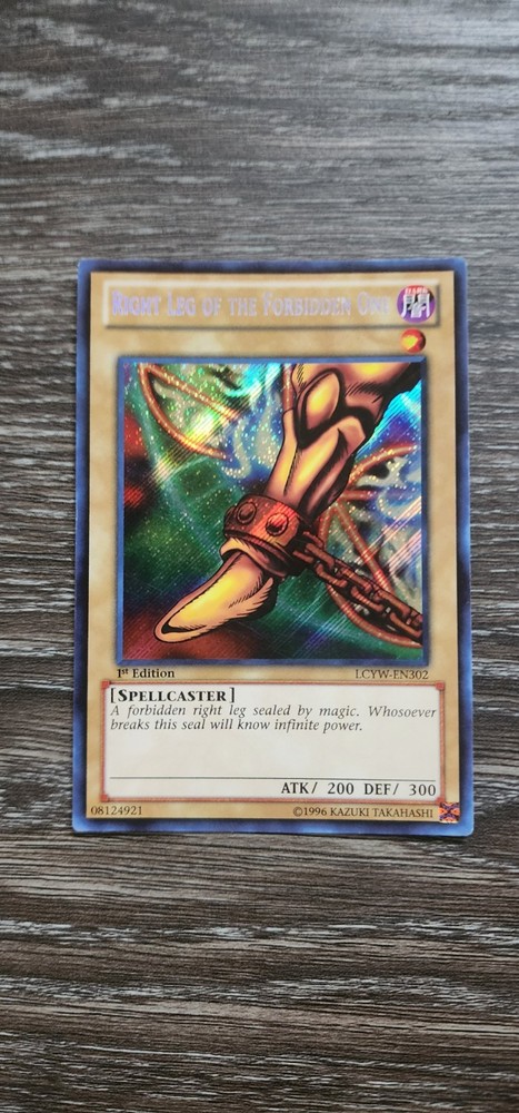 The Right Leg of the Forbidden One LCYW-EN302 is a highly sought-after Yu-Gi-Oh! trading card from the Legendary Collection 3: Yugi's World set. Being a Secret Rare card with Dark attribute and a high defense of 300, it belongs to the Spellcaster creature type. Manufactured by Konami, this English-language 1st Edition card is a valuable addition to any Yu-Gi-Oh! collection, offering both defensive and attack capabilities with its powerful stats of 300 defense and 200 attack.