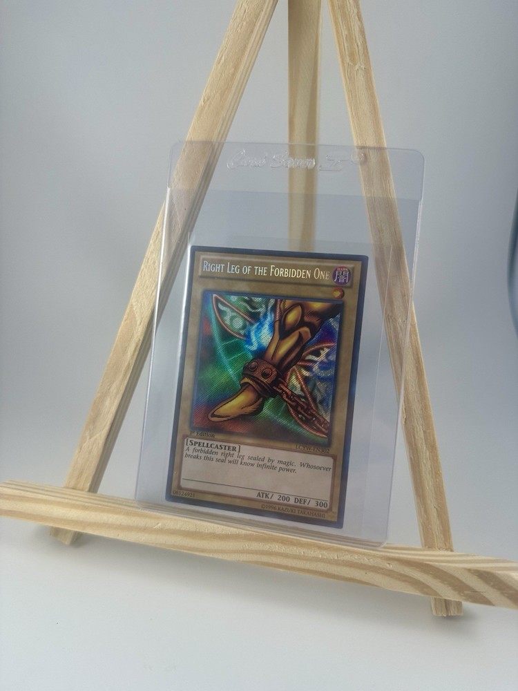 The Right Leg of the Forbidden One LCYW-EN302 card is a Dark Attribute Spellcaster card from the Yu-Gi-Oh Legendary Collection 3: Yugi's World-1st Edition set. Manufactured by Konami, this English language card has a Secret Rare rarity and a defense/toughness of 300 and an attack/power of 200. It is a Normal card with the unique 1st Edition feature, making it a valuable addition to any Yu-Gi-Oh TCG collection. Shipped in Card Saver I as shown, in bubble sleeving with cardboard stiffener for safe delivery.