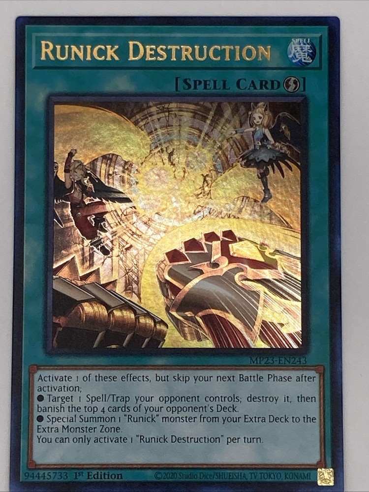 Unleash the power of Runick Destruction from the 25th Anniversary Tin: Dueling Heroes Mega Pack, a must-have for any Yu-Gi-Oh! TCG enthusiast. As a 1st Edition Ultra Rare card, MP23-EN243 stands out with its Quick Play attribute, allowing for strategic gameplay decisions. This English-language card, produced by Konami, is designed for players aged 6 and up, adding a potent spell to your collection that can tip the scales in your favor. Enhance your deck with the captivating artwork and competitive edge that Runick Destruction provides. Thank you for viewing our Yu-Gi-Oh cards on eBay! This card has come straight from the booster pack straight to a penny sleeve. If you have any questions or issues, please do not hesitate to reach out to us! We will do everything we can to assist you! Thank You!