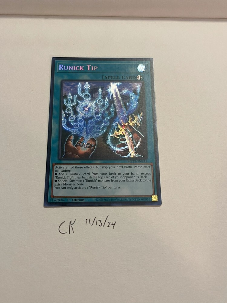 Elevate your Yu-Gi-Oh! TCG collection with the Runick Tip card, a sought-after piece from the 25th Anniversary Tin: Dueling Heroes Mega Pack. As a 1st Edition Prismatic Secret Rare card numbered MP23-EN241, it's a must-have for both seasoned collectors and competitive duelists. The card features the Hero creature/monster type, showcasing the strategic depth and aesthetic appeal that Konami is known for.This English-language card brings a touch of nostalgia and excitement, being part of a special set commemorating the game's 25th anniversary. Whether you're looking to enhance your gameplay or complete your card collection, Runick Tip is a standout choice with its unique design and rarity. Add it to your deck or display case and enjoy the prestige it brings to your collection.