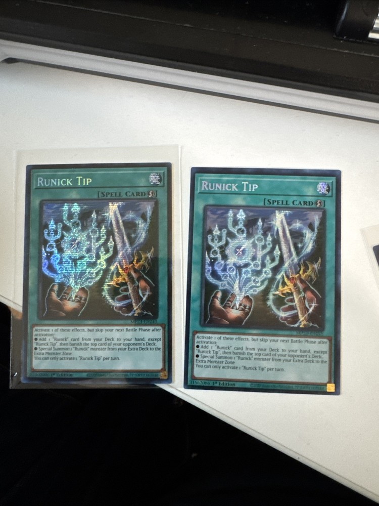 The Runick Tip MP23-EN241 25th Anniversary Tin: Dueling Heroes Mega Pack 1st Edition card is a highly sought-after Yu-Gi-Oh! TCG collectible. This Prismatic Secret Rare Spell-Quick Play card from the manufacturer Konami features Dueling Heroes Mega Pack set in English language. Perfect for collectors looking for a rare and special addition to their card game collection, this card is a valuable and unique find for fans of the Yu-Gi-Oh! TCG.