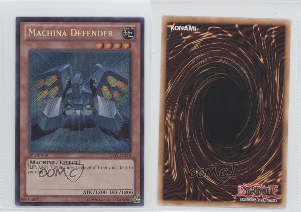 2012 Yu-Gi-Oh! Legendary Collection 3: Yugi's World - Mega-Pack [Base] - 1st Edition #LCYW-EN170 SCR - Machina Defender COMC Item: 10942788 - YuGiOh Card - Featuring Machina Defender Search for more: 2012 Yu-Gi-Oh! Legendary Collection 3: Yugi's World Search for more: 2012 Yu-Gi-Oh! Legendary Collection 3: Yugi's World - Mega-Pack [Base] - 1st Edition View all of our Listings Auctions Buy It Now About Us Located in the beautiful Pacific Northwest, COMC (Check Out My Cards) is the world's largest consignment service for trading card singles. More than 10,000 people have used our consignment service to list over 50 million trading cards. Find out how we can help you consign your items on eBay by contacting us through eBay messaging. COMC -- "The Safe & Easy Way to Buy & Sell" Raw Condition for Modern Cards Unless otherwise noted, raw modern cards are listed in Near Mint-Mint condition or better. A NM-MT card appears to be Mint at first glance, but upon closer inspection, may exhibit some of the following: minor print defects (e.g. roller marks, print line, dimple), minor scratches, slight edge wear, and slight corner wear. Centering is clearly visible in the images provided and does not factor into our condition assessment. Raw Condition for Vintage Cards Unless otherwise noted, raw vintage cards are listed in Excellent condition or better. An EX card may exhibit some of the following: minor rounding of corners, surface wear, print defects, light scratches, and slight edge wear/chipping. Centering is clearly visible in the images provided and does not factor into our condition assessment. Domestic Shipping Combined shipping for multiple items is available. To receive combined shipping, please ensure all desired items are in your eBay shopping cart before proceeding to checkout. eBay limits orders to 40 items per order. We automatically combine multiple orders placed on the same day. If you place multiple orders on the same day, please contact us to request a refund of applicable shipping costs. Signature confirmation may be required on invoices over $400. All cards are protected and shipped securely. International Shipping COMC offers eBay's International Shipping (EIS) for international orders under $2,500* (see country exceptions below). All duties and import fees are paid at checkout; in the rare event that there are additional import fees upon delivery, these are borne by the buyer. EIS packages route through a shipping hub in Erlanger, KY before shipping to their final destination. Please note that EIS does not allow for combined shipments. The shipping rates are determined by eBay and cannot be adjusted. *Maximum sale price exceptions: Colombia, Kuwait ($2,000); Taiwan ($1,539); Chile, Costa Rica, Guatemala, Honduras, Trinidad and Tobago ($1,000); Antigua and Barbuda, Aruba, Belize, Dominica, Grenada, Philippines, Saint Kitts and Nevis, Saint Lucia, Montserrat, Turks and Caicos Islands ($500); Dominican Republic, El Salvador ($200). Please request a shipping quote through eBay messaging for orders that exceed the maximum sale price supported by eBay's International Shipping. You will be responsible for all duties and import fees for international orders shipped outside the EIS. All cards are protected and shipped securely. Payment COMC does not accept offers on our cards through our eBay storefront. COMC utilizes eBay’s managed payments system. If you are experiencing difficulties making a payment, please contact eBay for assistance. Return Policy Returns are only accepted on the rare occasion the item is not as described. If you are making a return, please initiate the return process through eBay so a mailing label can be provided for you. Prior to listing, our expert team carefully assessed this item to represent it accurately. Please review the description and high-definition images prior to purchasing to ensure this item meets your satisfaction. We welcome you to contact us if you have further questions about this item. Trust and Integrity COMC carefully assesses each item consigned to us to prevent fraudulent items from entering the marketplace. If you believe an item offered on COMC may be fraudulent, please contact us with details so we can investigate the issue. Items we determine are outside our supported items policy may be removed. Last Modified: 6/9/2025 6:11:37 PM PDT