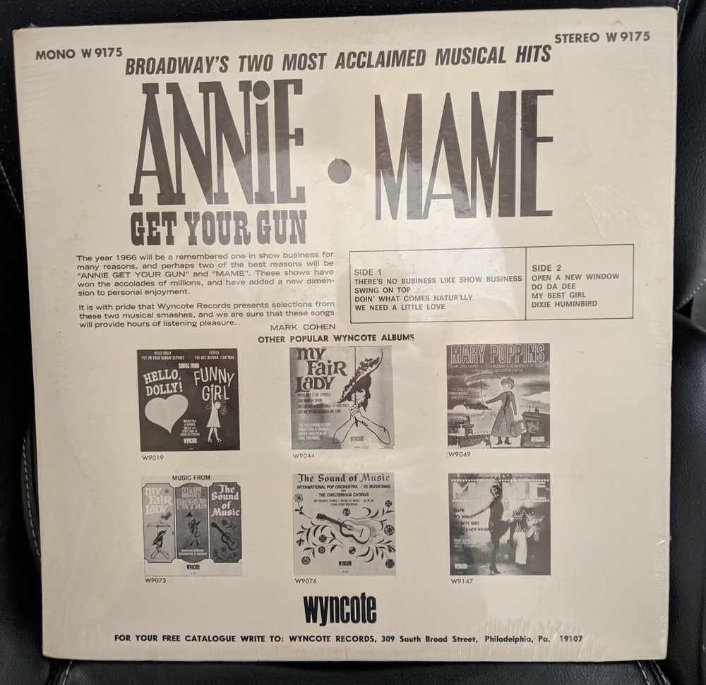 SEALED ANNIE GET YOUR GUN /MAME (SELECTIONS FROM) WYNCOTE RECORDS LP 1967 STEREO Album is still sealed in shrink-wrap. Ships next business day....