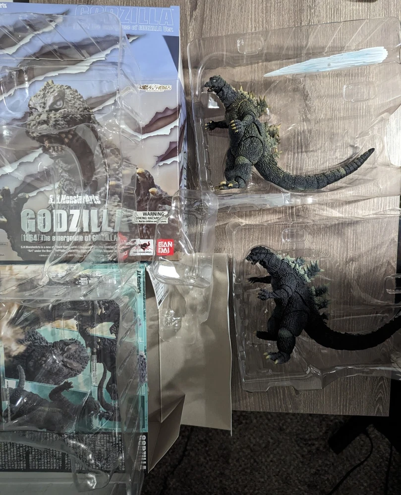 Both original and the Emergence of Godzilla versions. They come with the original boxes. The condition is like new. Only displayed for a short time on the shelf. For the original version, the right wrist has a relatively loose joint which was the same when I opened the box as new. It should not be an issue.