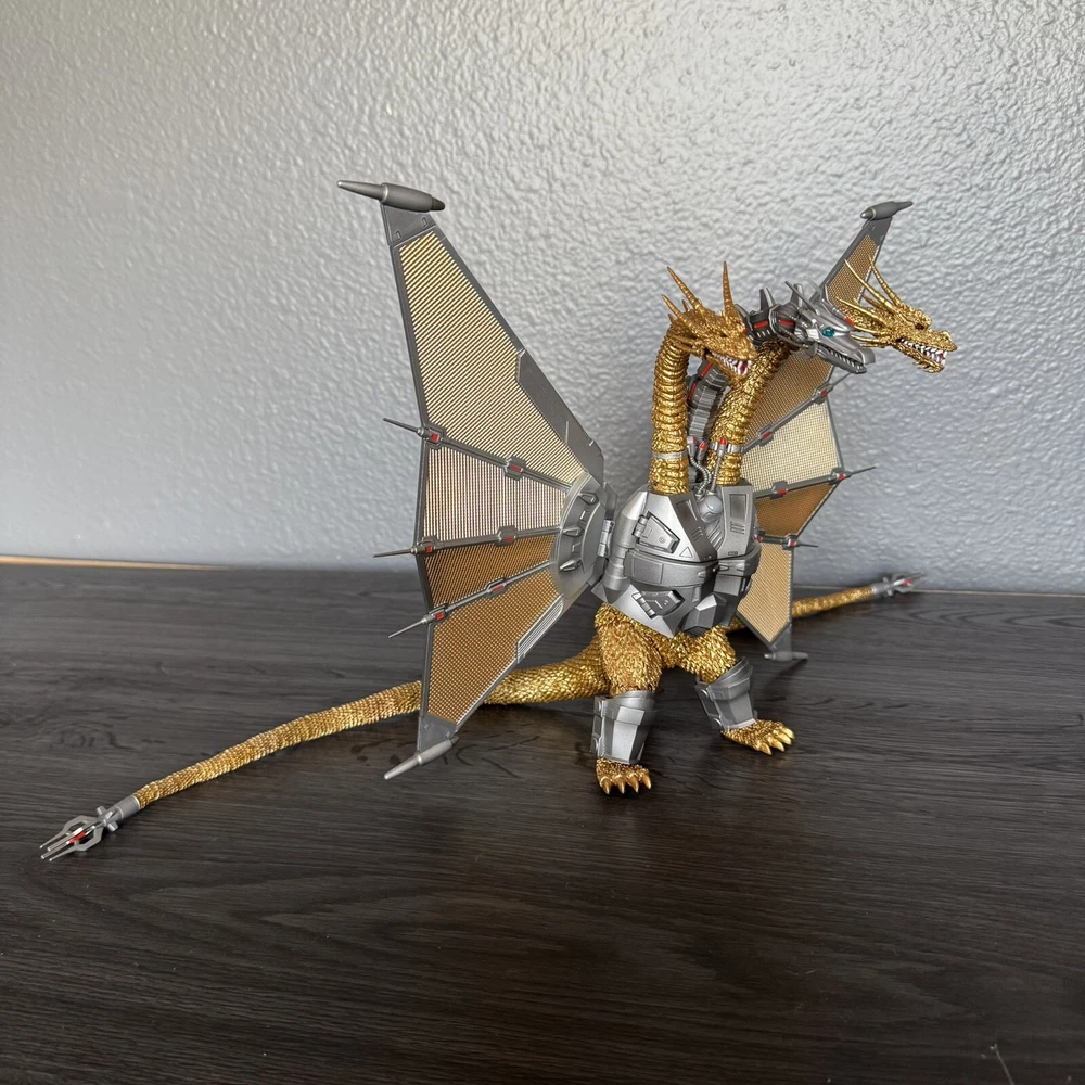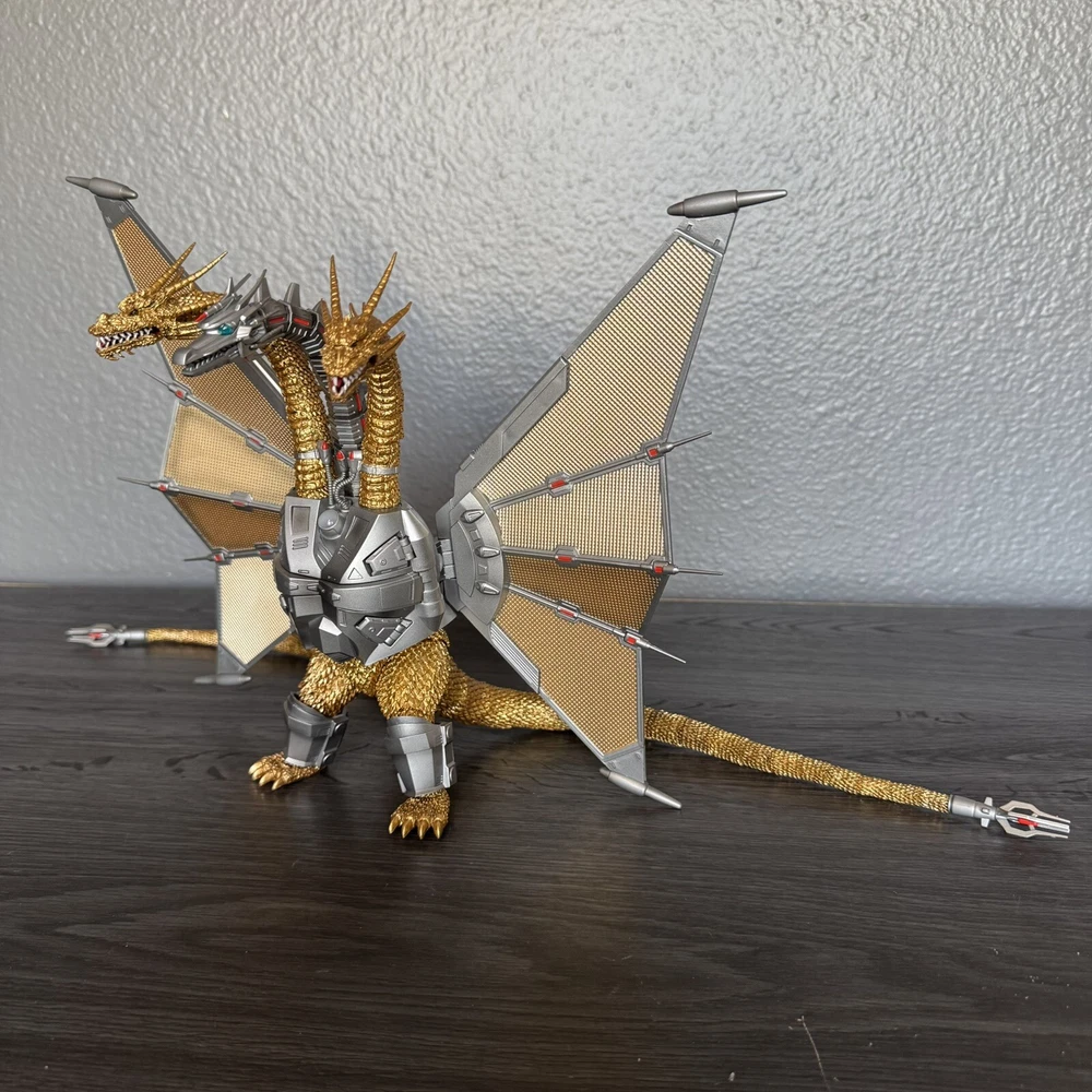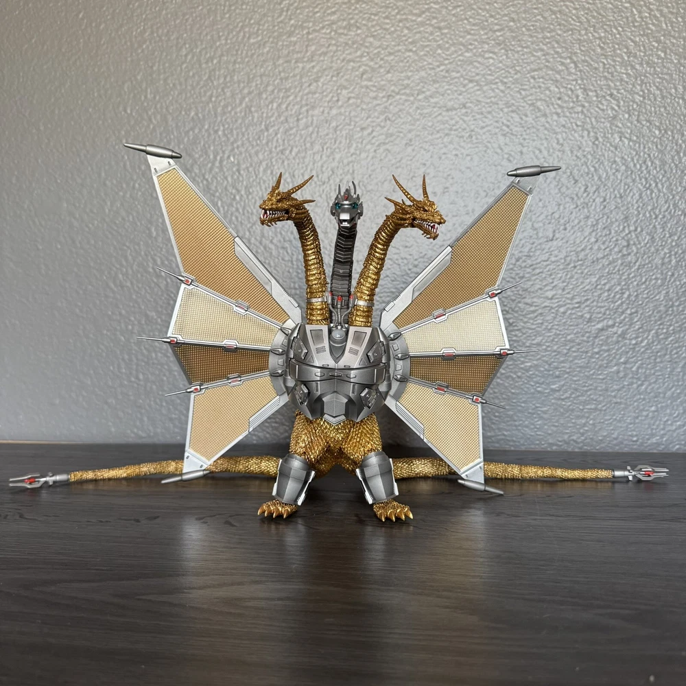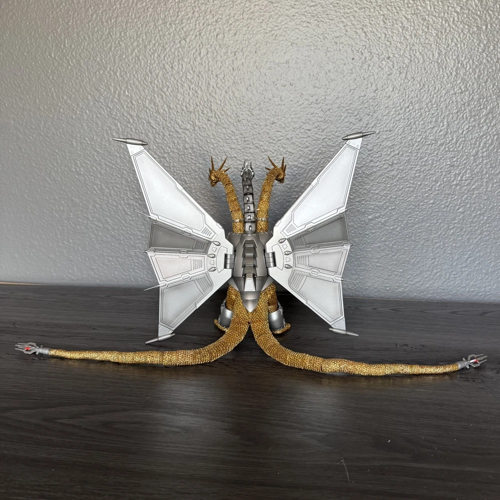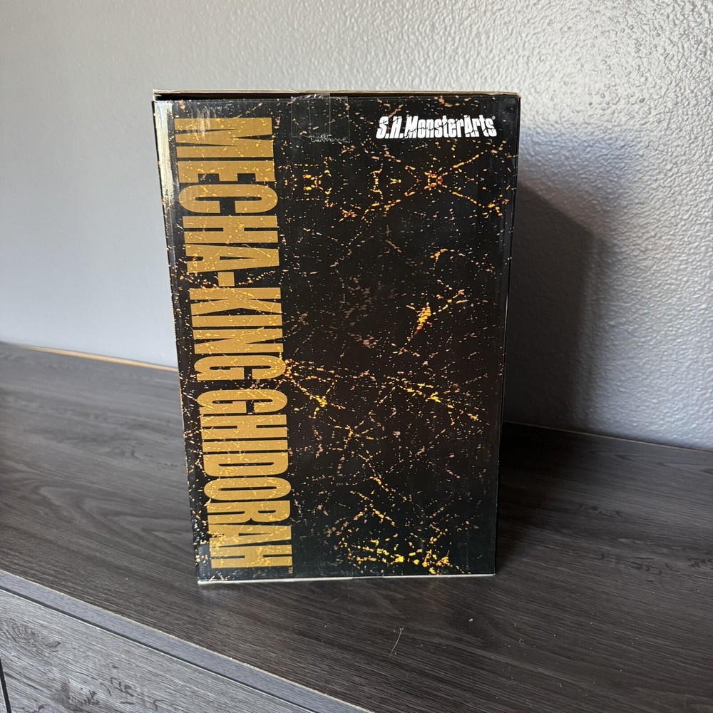 This S.H. MonsterArts Mecha King Ghidorah is an absolute gem for collectors! The detailing is stunning, and it comes with awesome accessories like the special stand, machine hand parts, and even three Dorats. Despite being a 2015 limited edition, it’s in great display condition with just minor dust. The box has some wear, but the figure itself is pristine. A must-have for any Godzilla or kaiju fan—highly recommended!