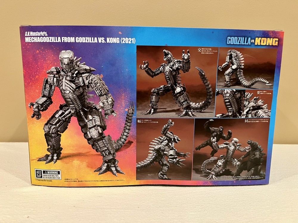 This is the amazing and highly-detailed S.H. MonsterArts Mechagodzilla 2021 figure from the epic movie Godzilla vs. Kong (2021)! Although the box is not sealed, the box itself is in great condition. And although it was only out of the box for a short period of time for display purposes, the figure itself is in mint condition and is like new! However, upon inspection, the upper plate which sits on top of the left leg is found to be slighly loose. And there is minor damage found on the back right side of the box. This figure will be shipped using USPS Priority Mail.