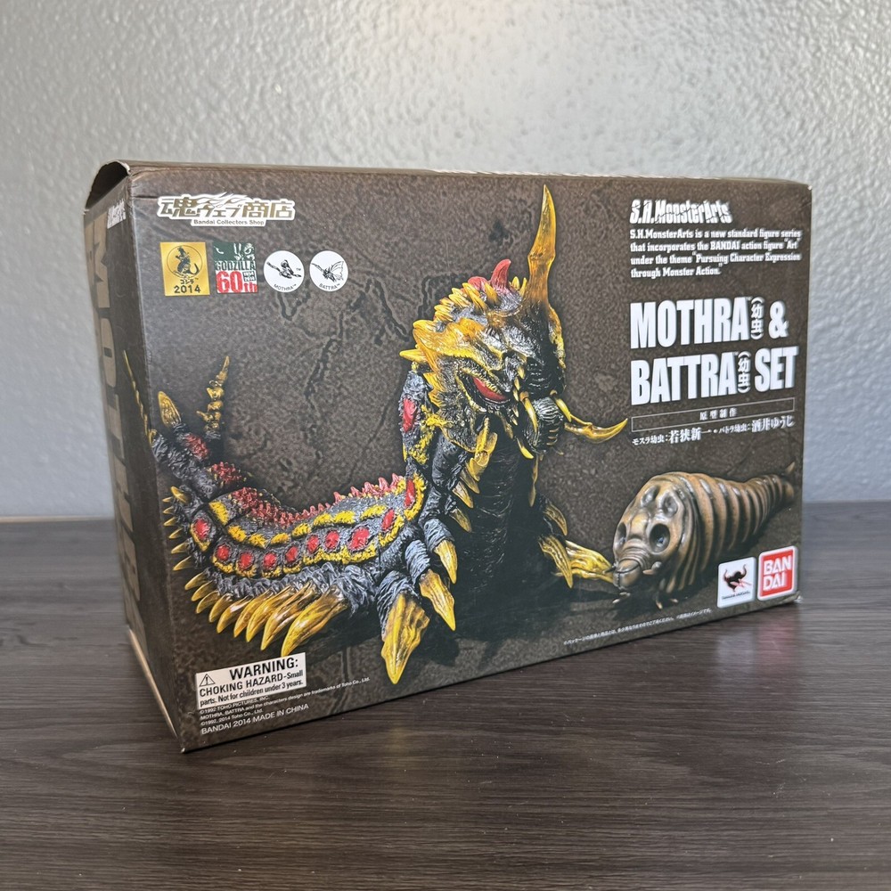 -Item Description- S.H. MonsterArts Mothra & Battra Larva Set. Limited Edition release in 2014 *DISCONTINUED* THE FIGURES: The figures are in a Great condition, were used only for Display. Figure may have some dust. Box may have some wear. Comes from a smoke free home. Mothra Body Length: 6.8 inches Battra Height: 6.4 inches Battra Body Length: 10 inches ACCESSORIES: String Shot Effect Pedestal Stand for Mothra Larva Amazing addition to your Collection! -Feel free to ask any questions - -PLEASE View Photos for details! - Payment: -PayPal, Debit, Credit, Klarna, Affirm -Please Allow three business days of handling *I Only Ship to U.S !!* All Sales Are Final No Refunds!