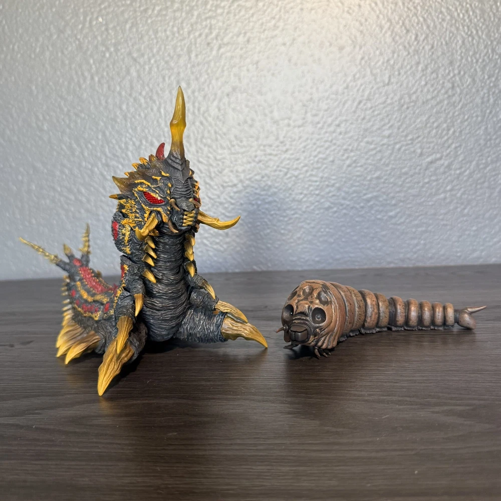 This S.H. MonsterArts Mothra & Battra Larva Set is a dream for kaiju collectors! The details are stunning, and the figures are in great condition with minimal dust. The included accessories like the string shot effect and pedestal stand add so much display value. Even though it's discontinued, this set is worth every penny—perfect for fans who want rare, high-quality monster figures. The size and sculpt are impressive, making them stand out in any collection. A must-have for Godzilla enthusiasts!