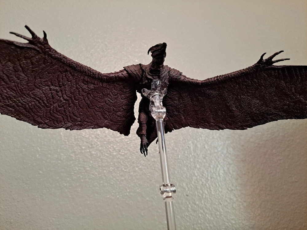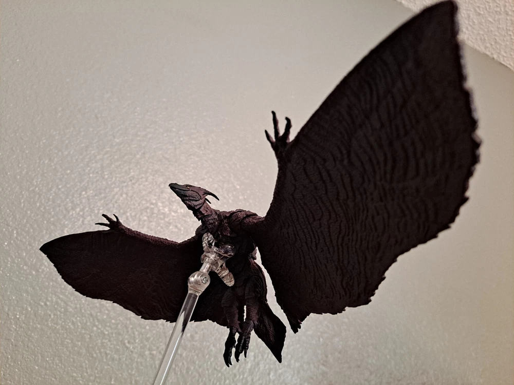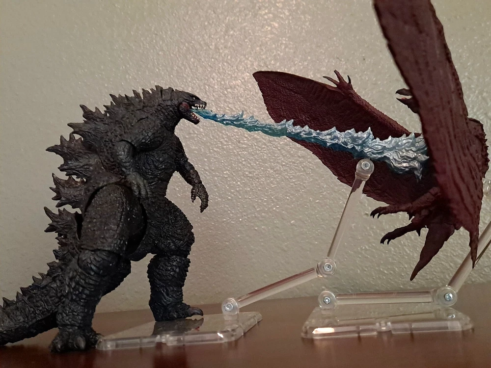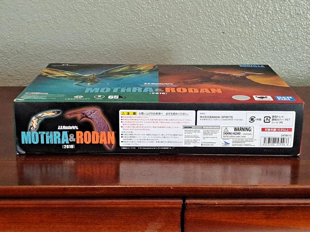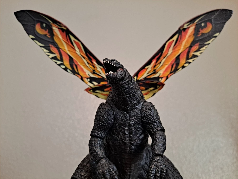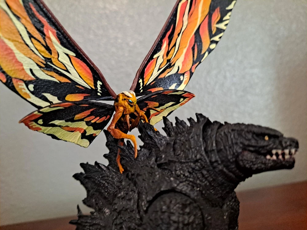 The S.H.MonsterArts Mothra & Rodan 2019 duel set, released November 22nd, 2019, is an unfortunate far cry from the comparatively more posable and dynamic Mothra and Rodan figures of the past. With a lacking range of motion across the board and a complete lack of articulation in either of their wings, these figures may leave most feeling a bit underwhelmed. Be that as it may, though, these two still make for some fantastic display pieces, something that's made especially true when complimented by any of the figure line's other 'Godzilla: King of the Monsters' tie-in releases. Plus, while Mothra here may be a glorified accessory (befitting considering this incarnation's less than tasteful role in the 2019 film), Rodan's figure on the other hand, despite it's stiffness, can still get away with some cool poses so long as you're creative about it. But, I mean, you already know all that, right? Course you do! You're not here 'cause you think these figures are cool themselves, you're here 'cause they make all your actually cool figures look even cooler! Now, now, let's not kid ourselves here. It's alright, I get you. In fact, I'd even say you'd be right for it! I mean, have you seen this gallery? Doesn't it just make that there not included with the set bootleg Godzilla 2019 that you can buy on my store page separately look so much cooler than it already is? Well, Duh! So, what're you waiting for? You go on and you complete that S.H.MonsterArts 'King of the Monsters' set of yours and you do it without coming to regret your purchase in the slightest, and you do it with a smile! BUY MY BIRD AND IT"S MOTH ( 'S.H. MonsterArts Godzilla 2019' sold separately: https://www.ebay.com/itm/126709467828 ) ( Also forgot to mention, but my copy of Rodan has a chipped nail. Pretty common problem for it considering the hard plastic, so do be mindful.)