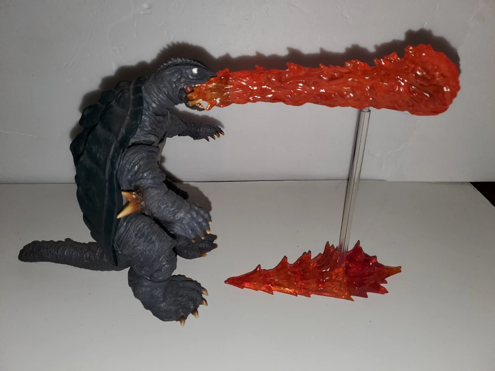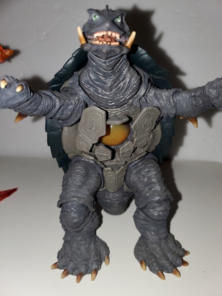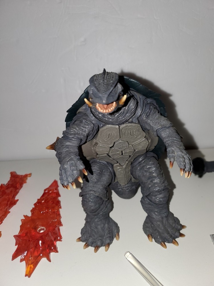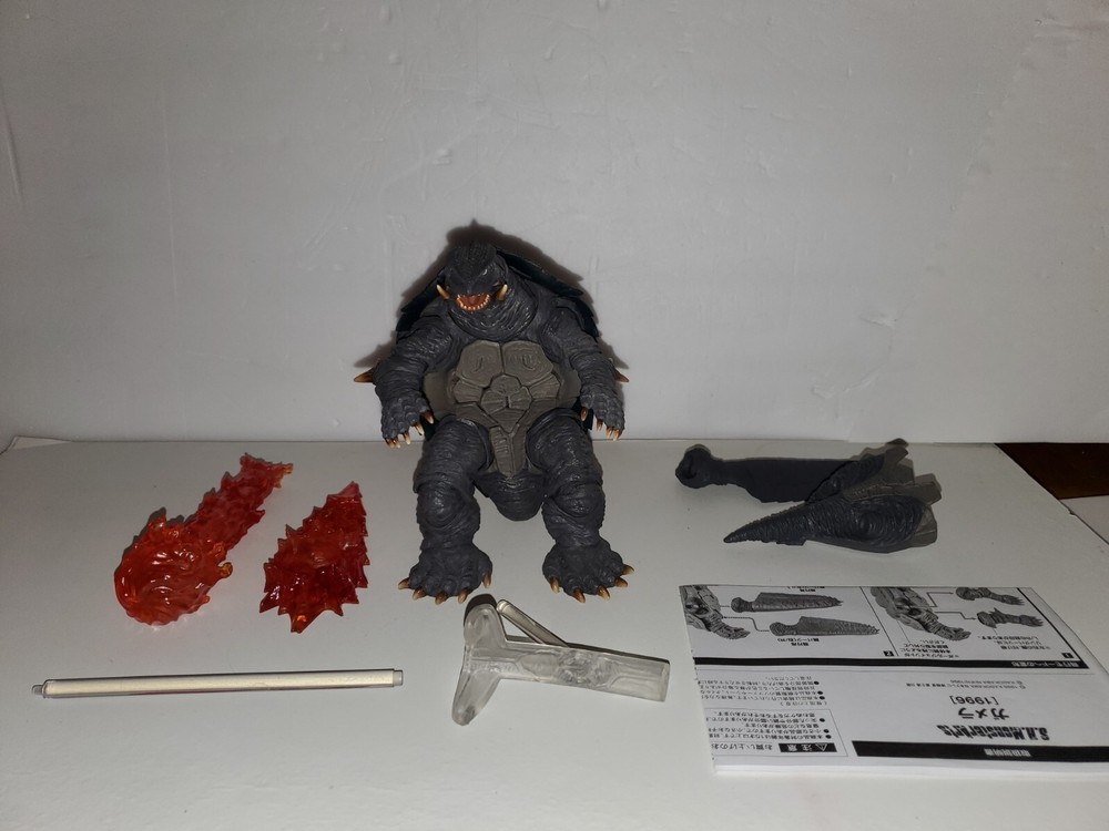 This Gamera figure from the Bandai Tamashii Nations S.H. Monsterarts line, as seen in Gamera 2: Attack of Legion has been removed from the packaging but remains in great condition. Joints are tight. Included are the instructions, base, flight stand, flame effect, stand for the flame effect, alternate legs/tail and the right fin. The left fin is missing, meaning you won't be able to display the figure in its flight mode. See pictures for more details. Did you miss out on this figure when it was originally released? Money burning in your pocket? Consider bidding. Looking for more shipping rates than what you see? Additional options are available when viewing this listing on a web browser. Buy multiple items and I'll ship them together after sending you an invoice. Individual items will be wrapped to prevent rubbing during shipping. Please allow 1-2 days to get the package ready and sent in the mail. You are responsible for any import fees.