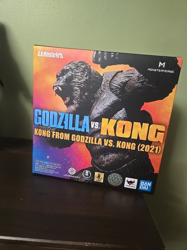 S.H Monsterarts Kong from "Godzilla vs Kong". Displayed and dusted outside of box. Comes with all accessories and box. Right arm varies in how loose it is but is mostly a solid figure
