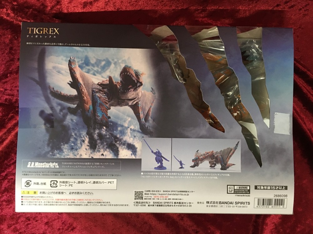 The long-awaited "Tigrex" is now available at S.H.MonsterArts! By focusing on the range of motion around the neck, body, tail, and shoulders, you can create Tigrex's distinctive poses. By replacing parts, you can recreate the folding of the wings. Furthermore, it is also possible to recreate an angry state! 【set content】 Main body, head parts for reproducing angry state, arm parts left and right for reproducing angry state, achromatic hunter mini figure, parts for deploying wings left and right Payment We will ship within 7 business days once payment is received. Shipping 1.Economy Shipping Sal(Registered AIR Small Mail) About 2-7 weeks no Tracking Number 2.Standard Shipping E-Packet(Registered AIR Small Mail) Aabout 7-30 days with Tracking Number 3.Expidited Shipping EMS or DHL Service EMS(Express Mail Service) About 5-7 days with Tracking Number and full insurance DHL Service About 4-6 days with Tracking Number and full insurance However, this may vary depending on destinations and other factors. We only ship to ebay registered addresses. We do not ship to addresses other than the registered address. About Us Thank you for visiting. We will provide you high quality products from Japan. Our commitment is to serve our customers with cordiality. We will make your shopping experience a great one. Please feel free to e-mail us if you have any questions. We are waiting for your order. International Buyers - Please Note: Import duties, taxes and charges are not included in the item price or shipping charges. These charges are the buyer's responsibility. Please check with your countryfs customs office to determine what these additional costs will be prior to bidding buying. These charges are normally collected by the delivering freight shipping company or when you pick the item up do not confuse them for additional shipping charges.