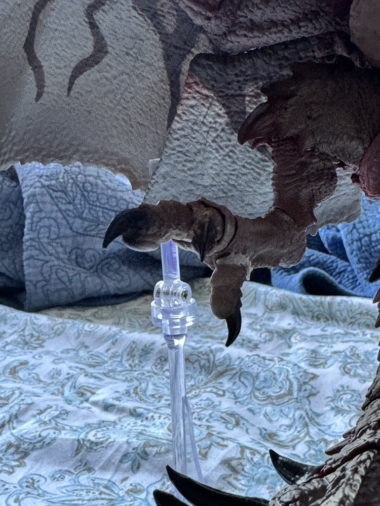 Comes complete with box. It’s in good condition aside from one of the toes snapping off, it is the heel of the right foot shown in picture 2....