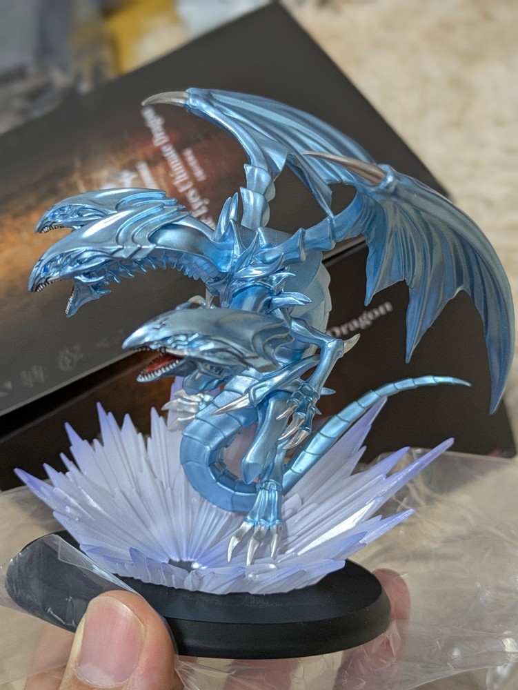 This Blue-Eyes White Dragon figure is absolutely stunning! The sculpt and paintwork capture the iconic monster's fierce look perfectly, with great articulation for dynamic poses. Even though it's pre-owned, the condition is fantastic—no noticeable wear. Shipping took a bit longer, but totally worth the wait for any Yu-Gi-Oh! fan. A must-have for collectors!