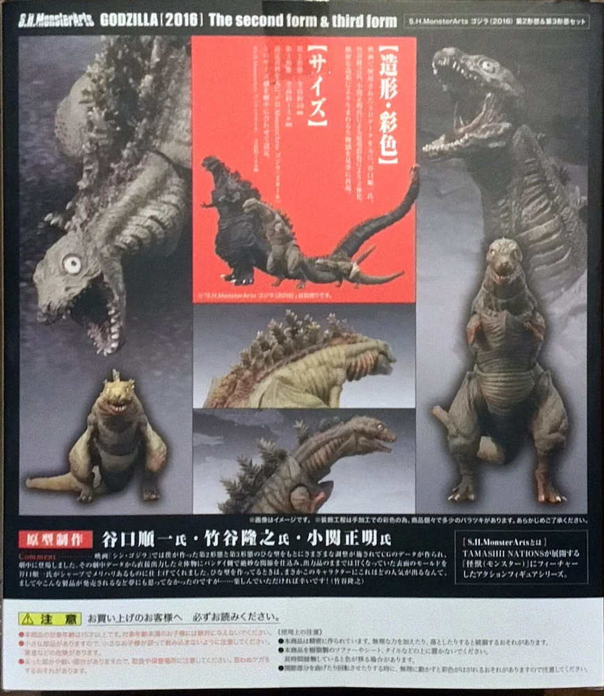 From the movie "Shin Godzilla," Godzilla (2016) 2nd and 3rd forms are now available as a set in the S.H.MonsterArts series. Based on the 3D data used in the movie, Junichi Taniguchi, Takayuki Takeya, and Masaaki Koseki have sculpted and painted the figures in 3D. The intricate sculpting has beautifully recreated the sense of life. Based on the design materials, the size has been set to match that of the S.H.MonsterArts Godzilla (2016), released in November 2016. size Godzilla (2016) 2nd Height: 50mm Godzilla (2016) 3rd Height: 130mm Shipping We always send the item with a tracking number. So please place an order without any concern on delivery. You can always track the delivery status. Shipping is only available to the address registered in eBay. If you want us to send another address, please change your address on eBay and then place an order. Shipping is available from Monday to Friday. Weekends are not available because freight (shipping) companies are closed. We do not mark merchandise values below value or mark items as “gifts” – Japan, US and International government regulations prohibit such behavior. If your address is in the remote areas defined by the freight (shipping) company, please pay the additional shipping fees with PayPal. About Importer's Obligation Import duties, taxes, and charges are not included in the item price or shipping cost. These charges are the buyer's responsibility. Please check with your country's customs office to determine what these additional costs will be prior to bidding or buying. Thank you for your understanding.