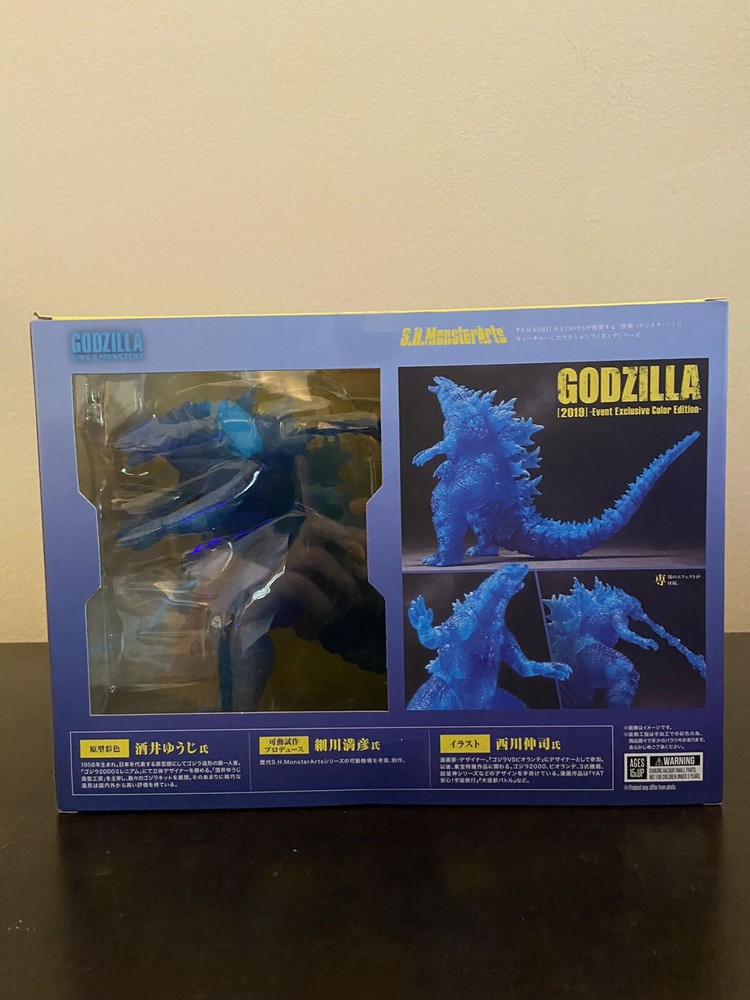 S.H.MonsterArts - Godzilla (2019) - SDCC Event Exclusive Color Edition FILM: Godzilla King of the Monsters (2019) OG RELEASE: 2020 HEIGHT: Approx 6” tall NOTES: Was displayed on shelf in smoke free home Comes with original box and shipping box Hello! Thank you for the interest in this item from my collection. If you have any questions, please feel free to reach out. Have a great day!